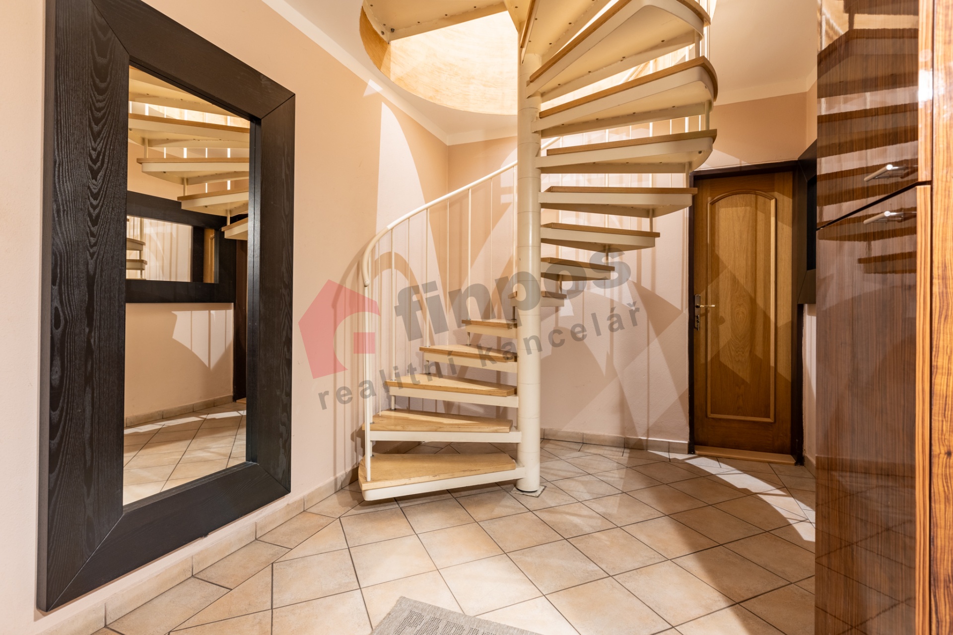 V přízemí se nachází prostorná technická místnost pro technické zázemí domu, sklep ideální pro uskladnění potravin, vína nebo sezónních potřeb, a sauna pro relaxaci a odpočinek po náročném dni. Předsíň je prostorná a poskytuje dostatek úložného prostoru. Dům disponuje dvěma garážemi, které poskytují bezpečné parkování pro dvě auta a další úložný prostor.