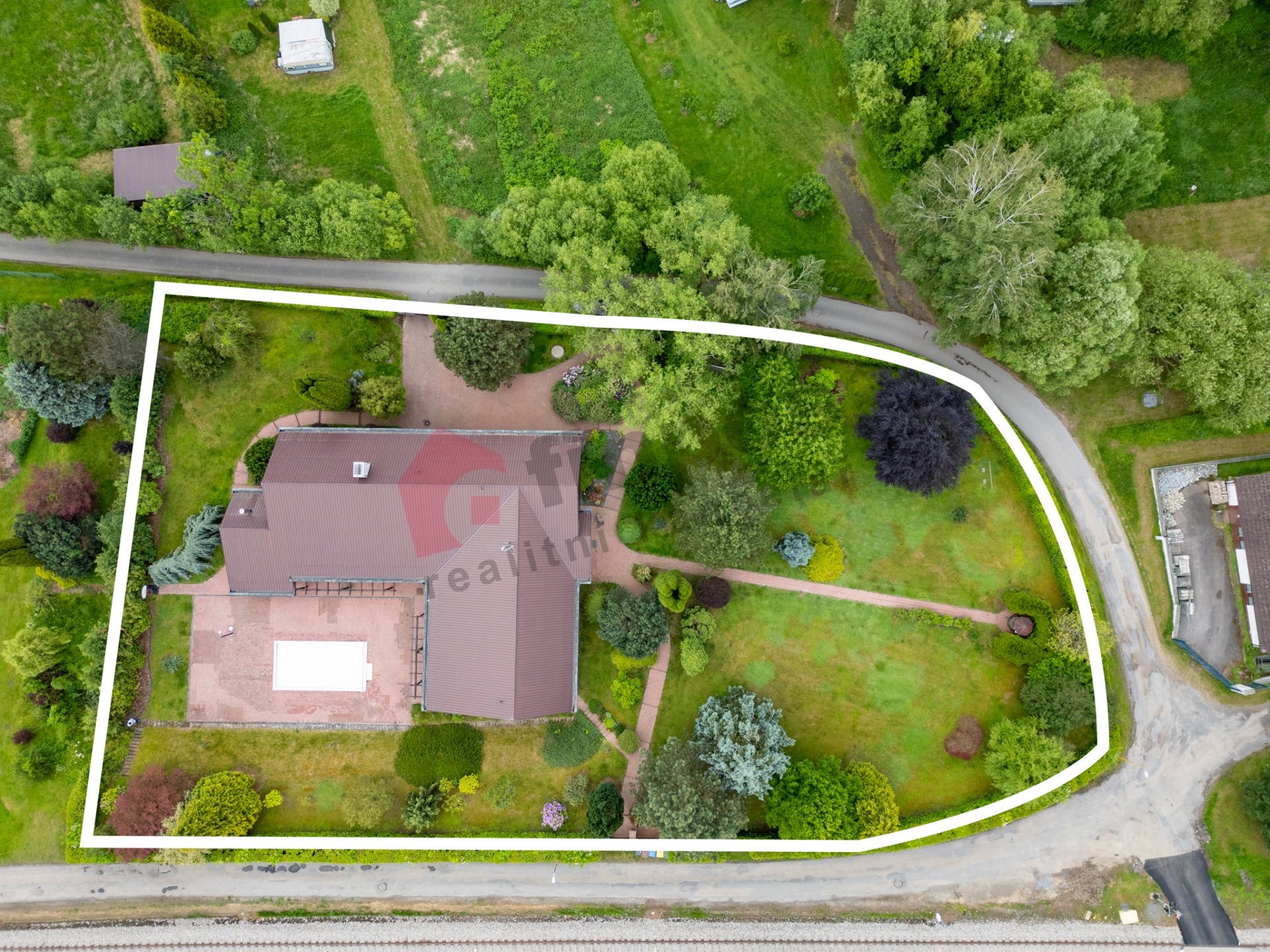 Dům se nachází v blízkosti řeky Sázavy, avšak mimo záplavovou zónu, což zajišťuje klidné a bezpečné bydlení s krásnými výhledy na přírodu. Celková plocha pozemku je 3822 m², což poskytuje dostatek prostoru pro zahradu, relaxaci a venkovní aktivity. Cihlová budova ve velmi dobrém stavu má zastavěnou plochu 436 m² a je připravena k okamžitému nastěhování. Užitná plocha domu činí 386 m² a je rozložena do dvou nadzemních podlaží. Pozemek je složen ze dvou parcel. Z čehož na druhé z nich je možné postavit dům nebo dvojdům.