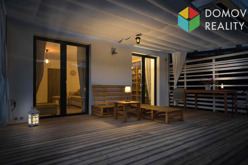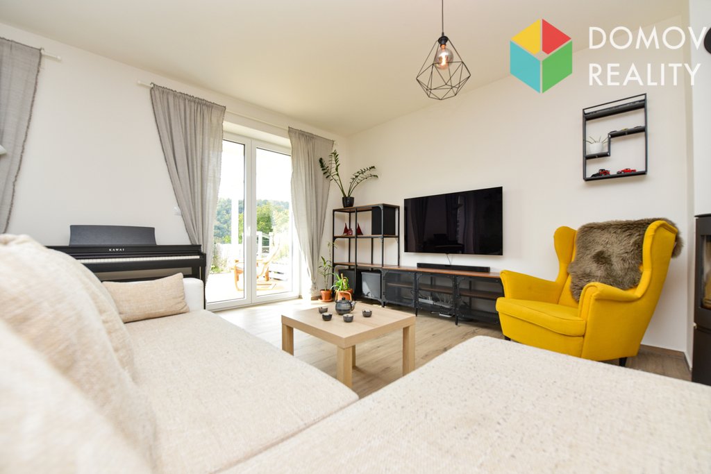 Dům má vše, co moderní rodina požaduje – prostorný světlý obývací pokoj, nadstandardně vybavenou kuchyňskou linku do tvaru U, 3 samostatné ložnice, 2 toalety, podlahové vytápění, krbová kamna, venkovní žaluzie a parkování na vlastním pozemku. Velkým francouzským oknem se dostanete na terasu a zahradu, odkud je výhled na zelené kopce nad Berounkou. Na pozemku je zahradní domek a sklad, které vyřeší úložné prostory. Další možnosti ukládat sezonní věci jsou na prostorné, částečně pochozí, půdě.