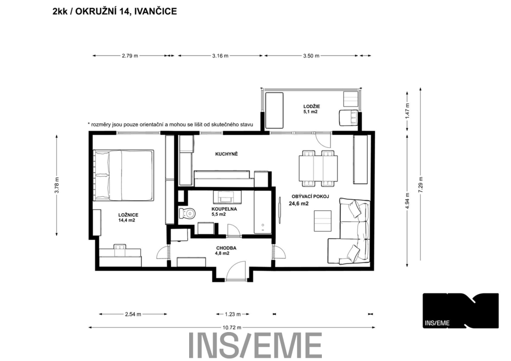 | Dispozice/podlahová plocha: | 2+kk/58 m² |