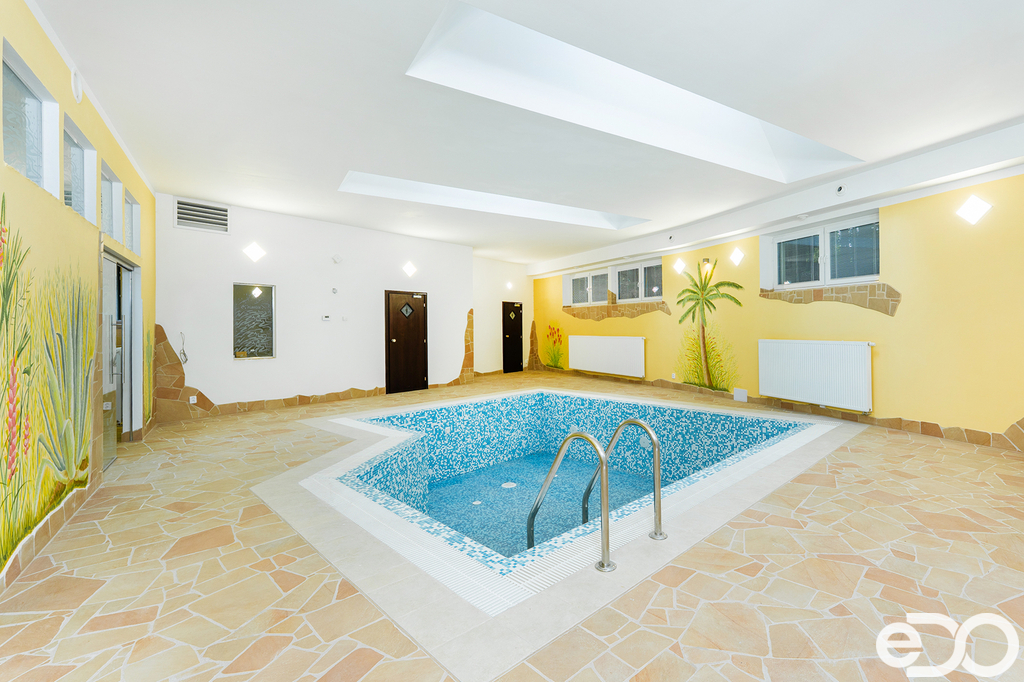 Wellness a relaxační zóna s vířivkou, saunou, bazénem a zázemím