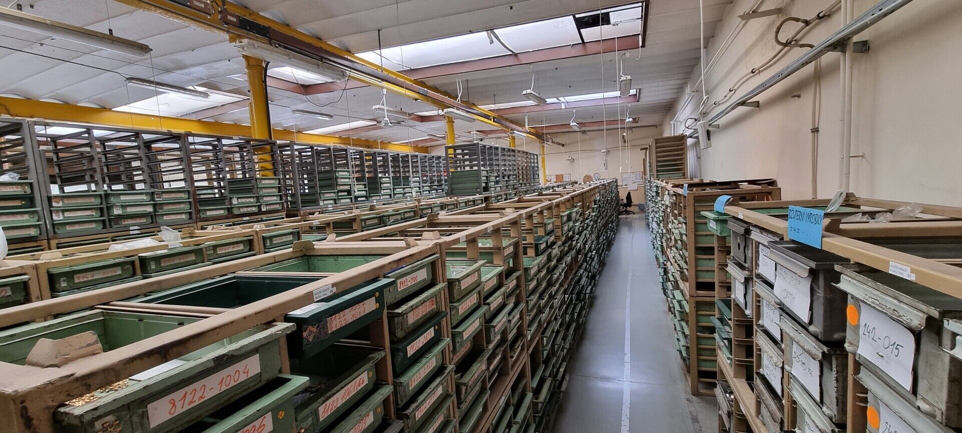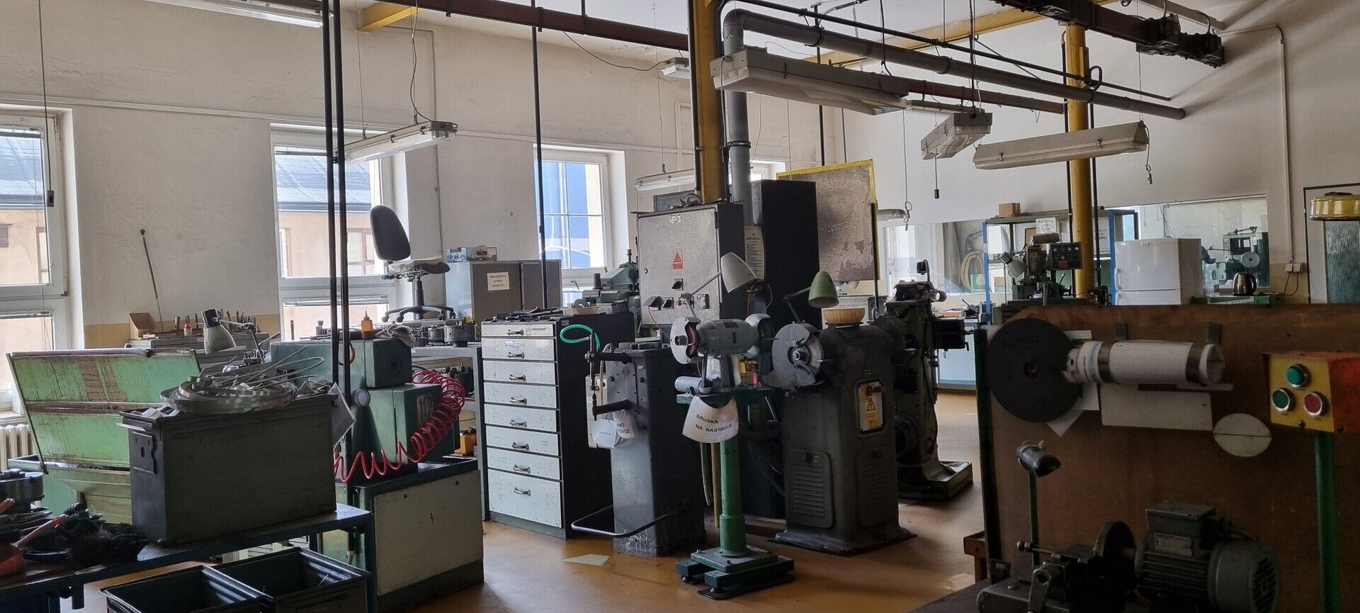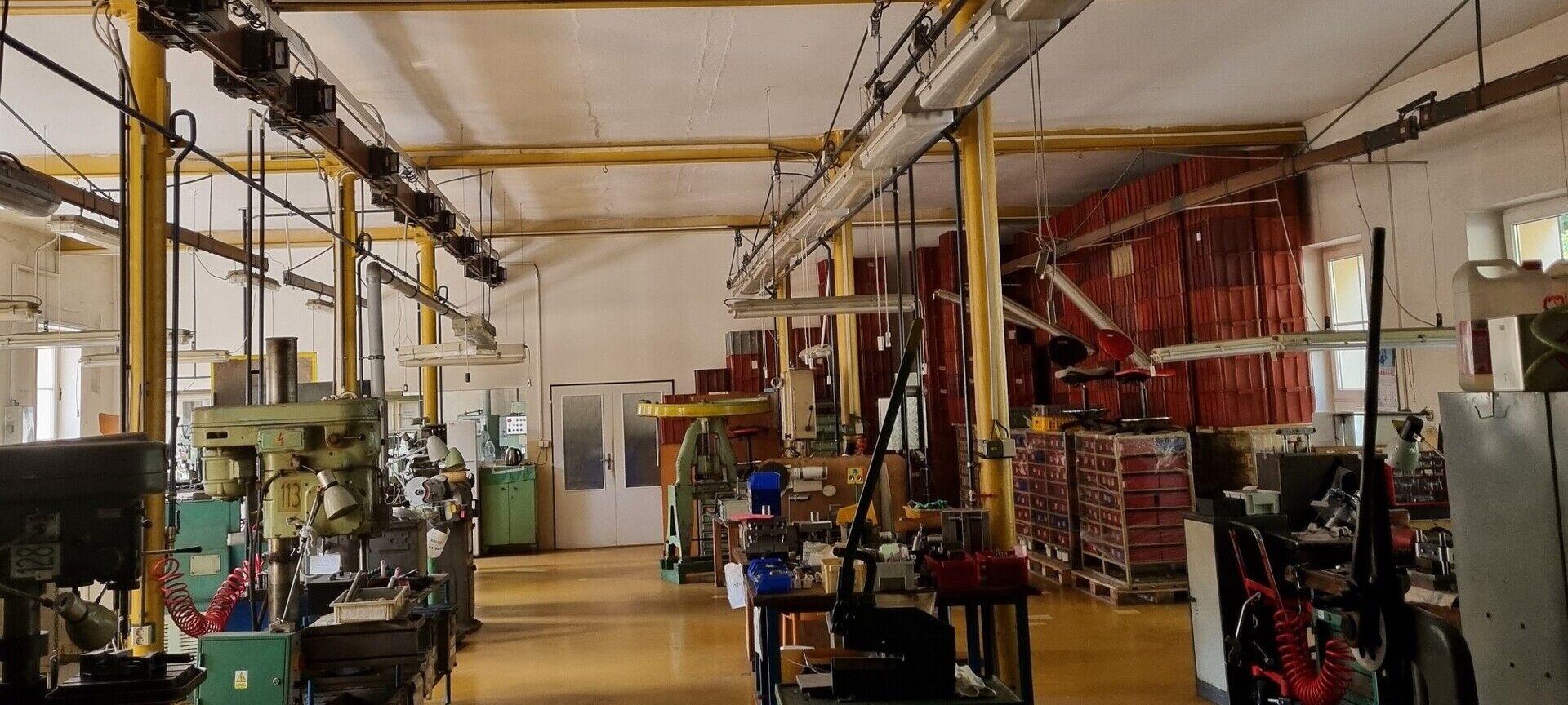 - 1. patro (1.300 m2): výrobní haly, sklady, svačinárna.