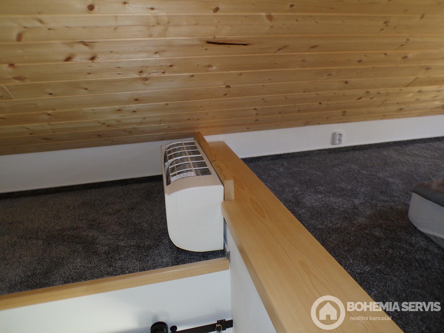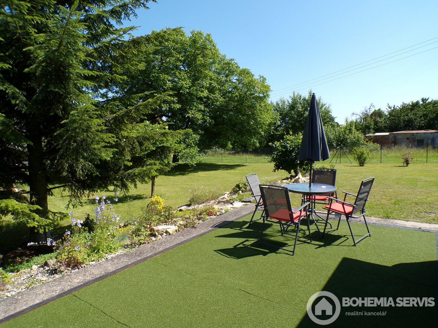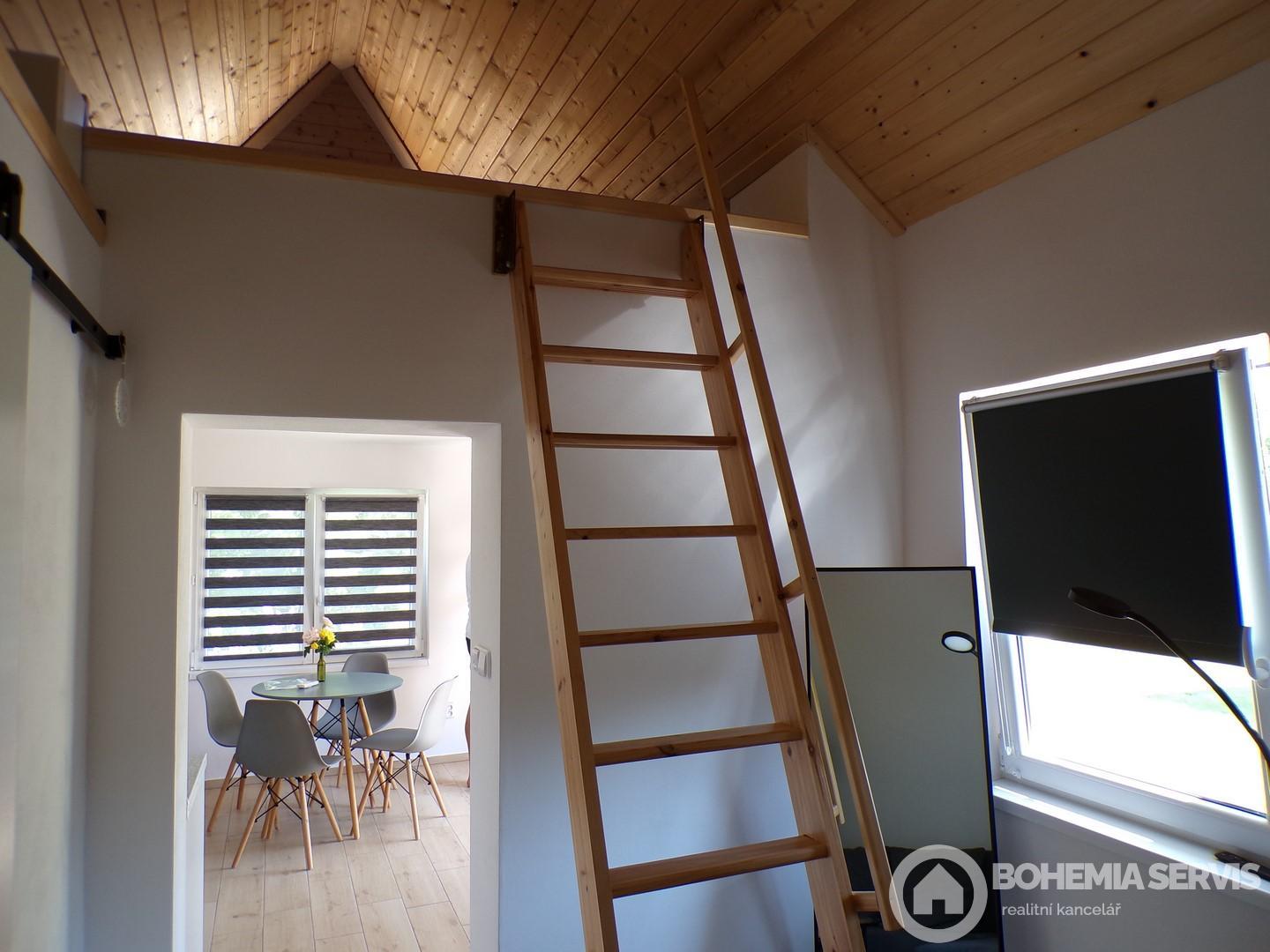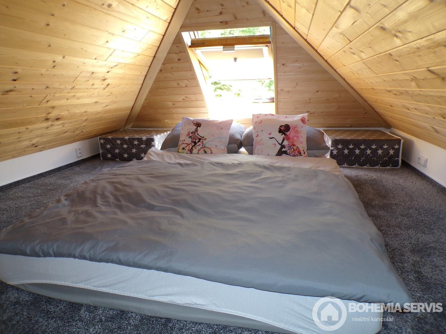 Dovoluji si vám v exkluzivním zastoupení, nabídnout k prodeji zahradní domek, určený pro rodinnou rekreaci v obci Jasenná, vzdálené cca 6 km od Jaroměře a cca 20km od Hradce Králové. Jedná se o samostatně stojící, přízemní objekt s podkrovní lůžkovou částí, sociálním zařízením, bez podsklepení. Nemovitost je umístěna na vlastním pozemku s jižní orientací. Objekt vznikl v roce 2024 adaptací stavby občanského vybavení. Stavba je cihlové konstrukce, bez zateplení. Vnější fasáda je opatřena silikonovou fasádní stěrkou, vnitřní plochy pak vápennou omítkou se štukovou stěrkou. Vnítřní plochy podkrovní části, jsou řešeny palubkovým obložením. Střecha předmětného domku je valbového typu s krovem klasické trámové konstrukce, jejíž krytinu tvoří střešní lepenka. Oplechování střechy je v provedení pozink. Chata je osazena plastovými okny, vstupní dveře jsou dřevěné, jednoduché s prosklením. V objektu se nachází stropy, rovného podhledu. Krytina podlahových ploch je tvořena keramickou dlažbou. Koupelna a WC, tvoří jeden situační celek. Koupelna je vybavena sprchovým koutem a umyvadlem. Přízemní a podkrovní lůžková část nemovitosti je spojena jednoduchým dřevěným schodištěm. Zdrojem vody pro objekt je obecní vodovodní řad. Odpady jsou pak svedeny do obecní kanalizace. Elektroinstalace je světelná i motorová( 230/400V). Ohřev teplé vody, je zajištěn pomocí průtokového ohřívače, vytápění samotné, je pak řešeno pomocí 3kw klimatizační jednotky vzduch - vzduch a lokálního vytápění na tuhá paliva . Vnitřní dispozice nemovitosti: kuchyňský kout s jídelní částí, obytný prostor, koupelna s wc. Podkrovní část pak zahrnuje pouze lůžkový prostor, umožňující přespání pro čtyři osoby. Malebnou atmosféru objektu, dokresluje i jeho vkusně a citlivě řešené okolí . Srdečně si vás tímto dovoluji pozvat na prohlídku. S možnostmi případného financování nemovitosti vám rádi poradíme.