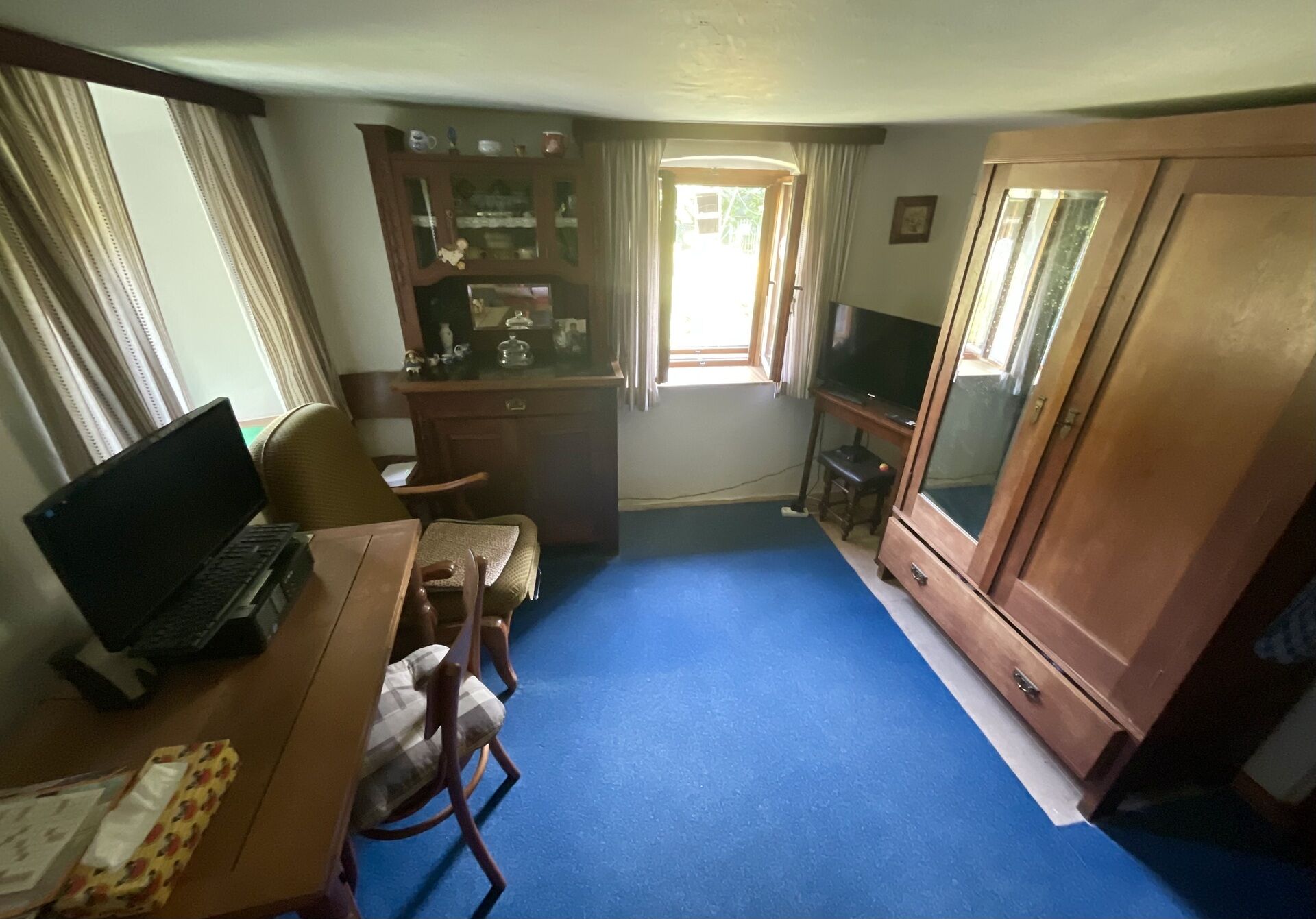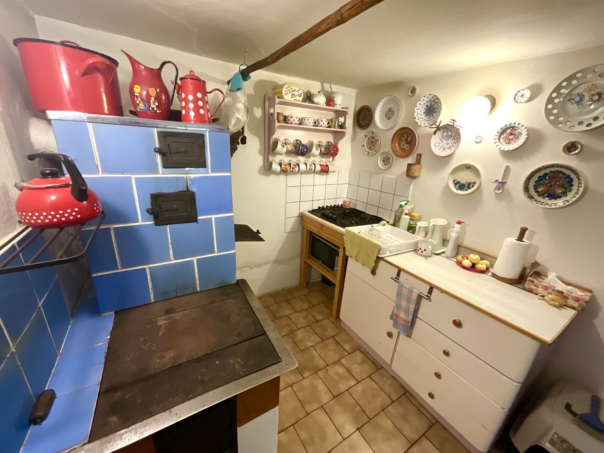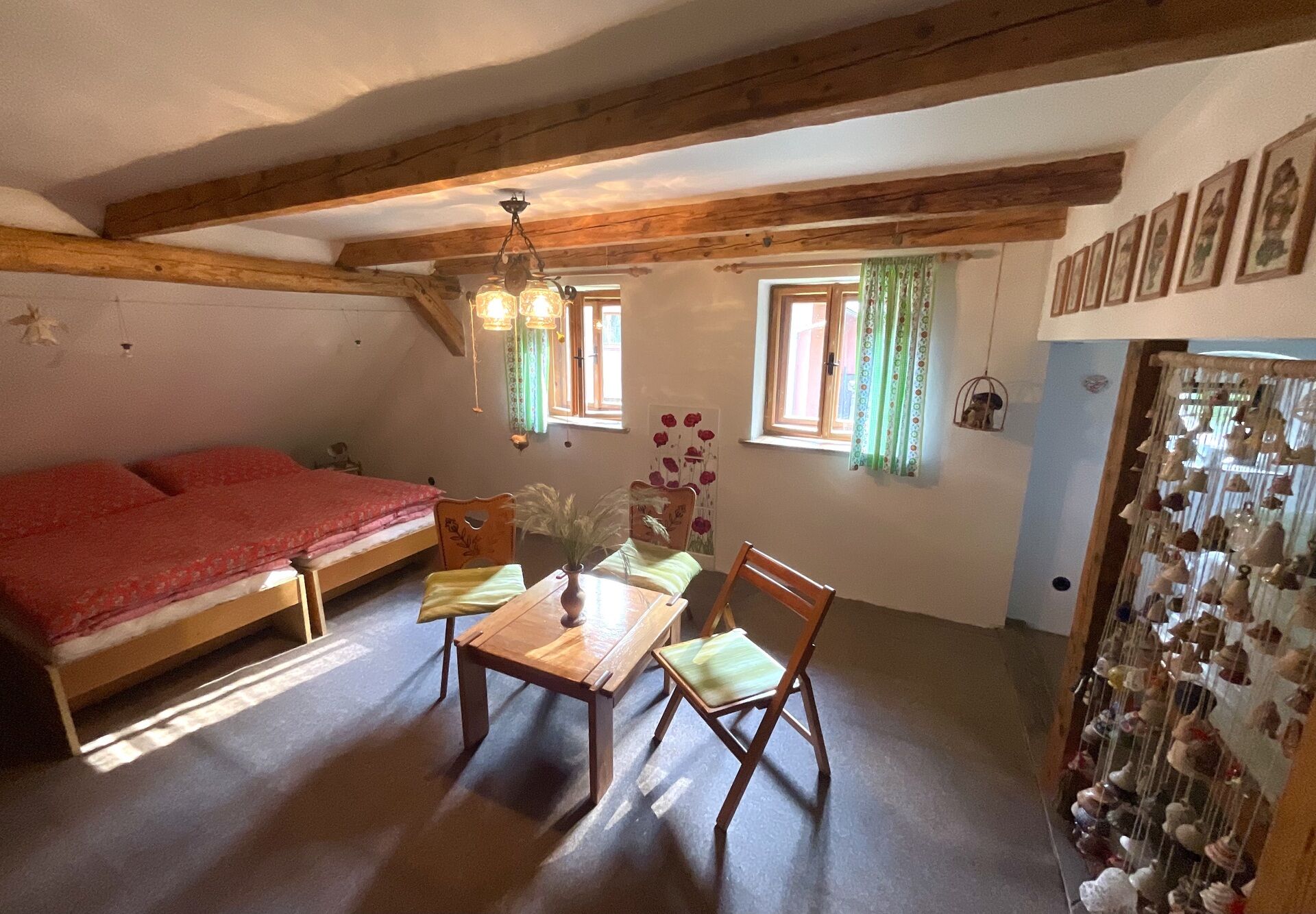 K nemovitosti náleží kůlna, kamenný sklep, stodola, vedlejší stavba a prostorná zahrada. Dispozice je příjemná: v přízemí se nachází chodba, kuchyně spojená s obývacím pokojem, další samostatná místnost, dílna pro kutily, komora/spíž a zrekonstruovaná koupelna se sprchovým koutem. Horní patro je částečně zrekonstruované a obsahuje místnost vhodnou k přespání, společenskou chodbu se vstupem na půdu a další prostory vhodné k rekonstrukci – ať už na další pokoje, nebo prostorné úložné místnosti. Velkou předností jsou původní troje kachlová kamna, která nejen vnášejí do interiéru jedinečné kouzlo a pocit opravdového domova, ale také umožňují praktické vaření i pečení. Stěny jsou částečně vyzděné kamením, což dodává chalupě pevnost a zároveň autentický venkovský charakter.