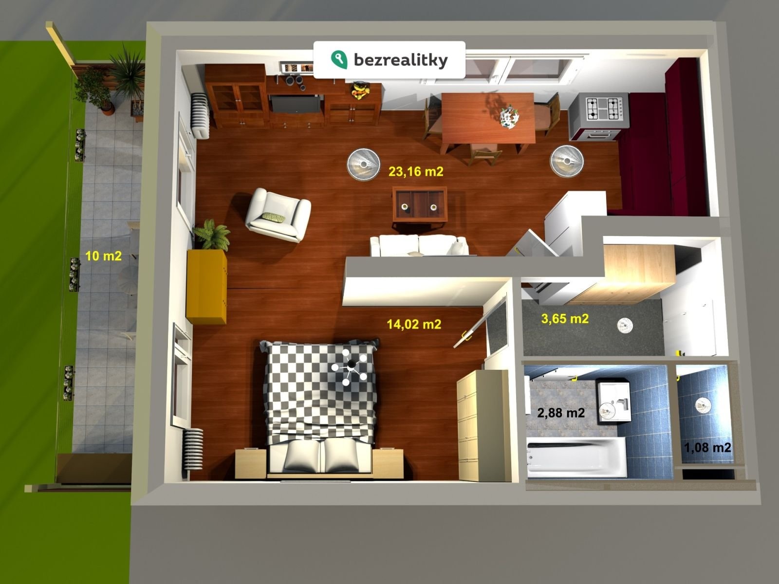 ✔ WC – 1,08 m²