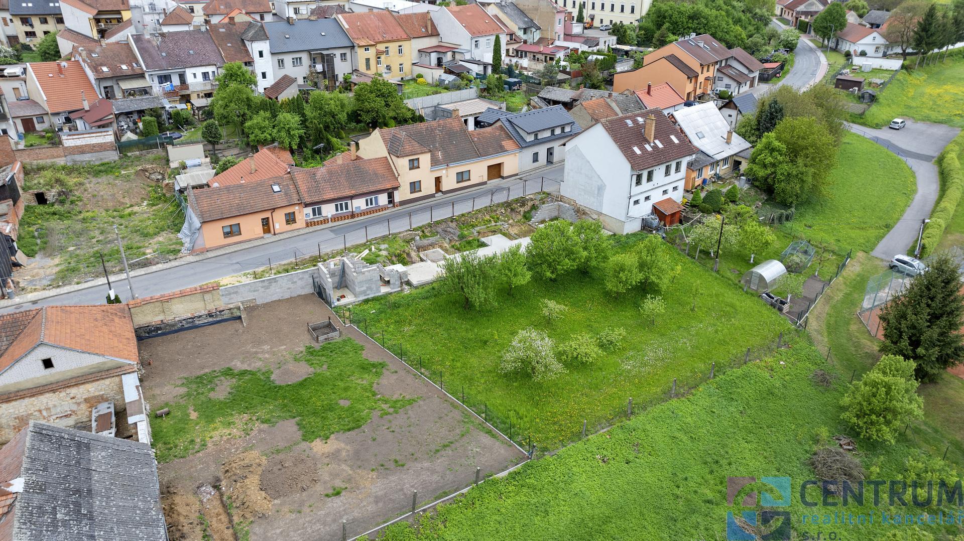 Předmětem nabídky je pozemek se základy budoucího domu o třech bytových jednotkách, které jsou ve skutečnosti koncipovány jako řadové domy, včetně garážových stání a privátních zahrad. Objekt je navržen z tradičních materiálů železobetonové základy, stropy a konstrukce části vnitřních stěn, keramické zdivo se zateplením z polystyrenu, dřevěný tesařský krov s mezikrokevní izolací, plechová falcovaná krytina, sádrokartonové podhledy. Výplně vnějších otvorů jsou navržené plastové s izolačními trojskly, z nichž některé jsou doplněny předokenními žaluziemi. Vytápění a ohřev teplé užitkové vody bude zajištěn tepelným čerpadlem vzduch/voda, jako doplňkový zdroj tepla se navrhují krbová kamna v každé jednotce s komínovým odtahem. Na střeše se počítá s umístěním fotovoltaických panelů. Dispozičně jsou jednotky řešeny jako 4+kk se dvěma koupelnami, samostatnou toaletou a technickou místností. V každém z pokojů je dostatek místa pro vestavěný nábytek. Zajímavostí je podélné dělení domu s půl patry, které plně ctí výškový rozdíl pozemku. Celkově se jedná o velmi zdařilé architektonické řešení, které dodává domu na atraktivitě.