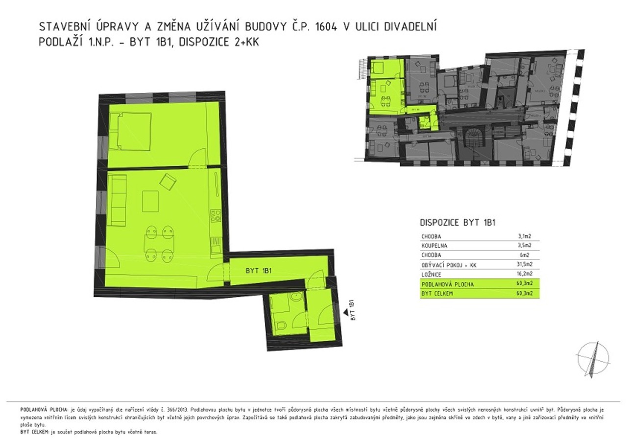 | Dispozice/podlahová plocha: | 2+kk/60 m² |