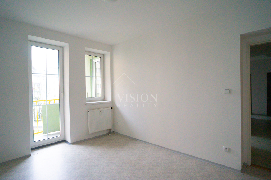 Byt je řešen velice prakticky: prostorný obývací pokoj s kuchyňským koutem, kde v kuchyni najdete sklokeramickou desku i elektrickou troubu. Dále je zde prostorná ložnice, koupelna s vanou a samostatné WC. V chodbě se nachází vestavěná skříň, která prakticky šetří prostor. Z obou pokojů se dostanete na malý balkon orientovaný na jih, což bytu dodává spoustu přirozeného světla a příjemnou atmosféru po celý den.