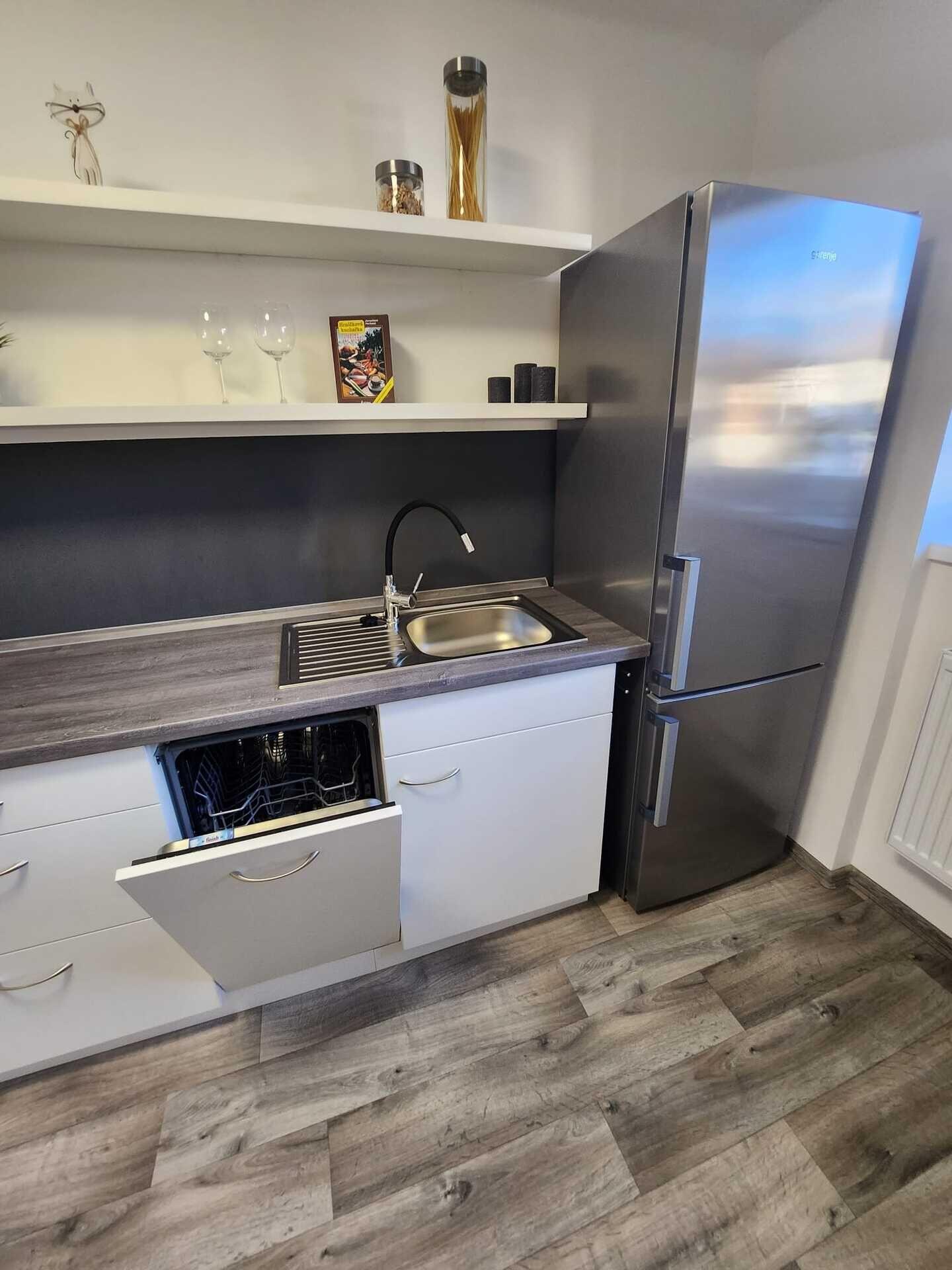 Byt prošel zdařilou rekonstrukcí, kuchyňská linka je plně vybavena el. spotřebiči a nabízí navíc kávovar a lednici, v bytě je připravená pračka, která je umístěna v komoře, kde se nachází plynový kotel.