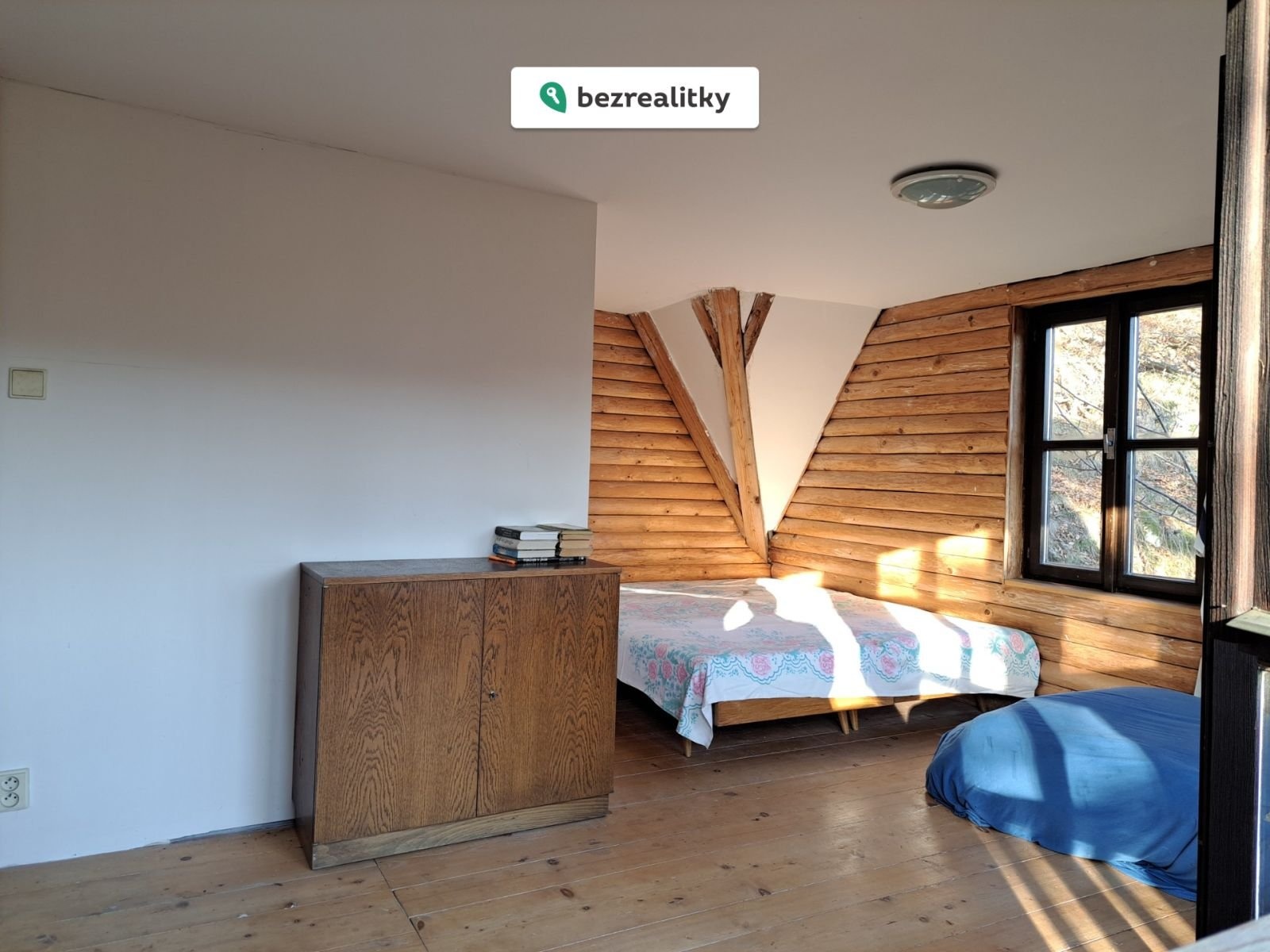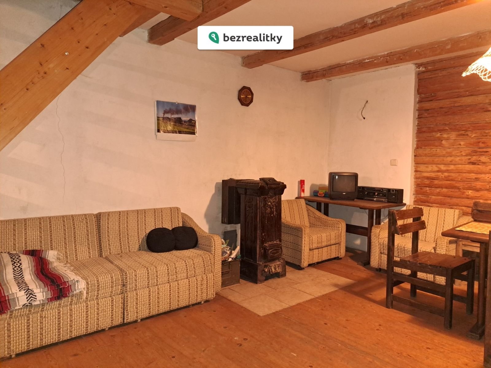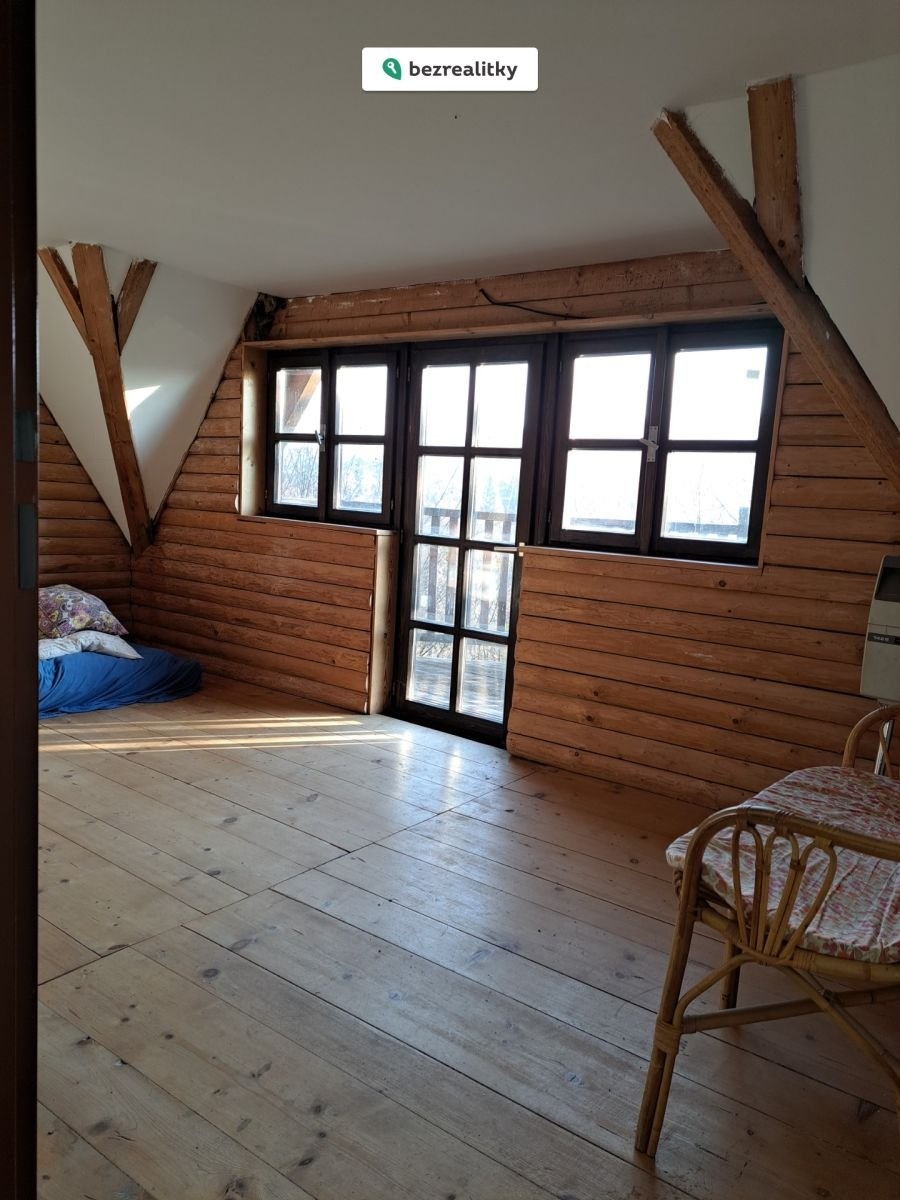 CENA SNÍŽENA 7.12.2025 | Srub nad Sázavou (chata v Posázaví) 3+kk ve dvou podlažích (74m2 podl.pl.+balkón a terasa 12m2+půda) z roku 1997 (ale s tradicí od r.1934) a dvě kůlny (5 a 3 m2) na jižní stráni nad Sázavou na vlastních pozemcích 1140 m2 z toho stavby 47+5+3 m2 v obci Kaliště u Ondřejova v části nesprávně (ale logicky) zahrnované do sousedního Poddubí (chata č.ev. 120 na stavebním poz.č.139 a zahrada p.č.535/4). Zahrada má většinou charakter smíšeného lesa se skalkami. Pozemek je v polouzavřeném areálu osady na okraji lesa, polohou a porosty výjimečně izolovaný od ostatních staveb a veřejně přístupných cest. Na pozemek je přivedena elektřina 3x400V a spádový vodovod z osadní studánky, který umožňuje i provoz el. boileru 120 l pro dřez v kuchyni a sprchový kout v koupelně i venku. Záchod je suchý v samostatné budce (s výhledem, ale bez srdíčka) nebo je možnost umístění chemického v koupelně. Vytápění kamny na dřevo z vlastního porostu. Bohaté zasklení izolačními dvojskly (i přes celou terasu) je v přízemí kryto okenicemi. Přístup od pobřežní silničky (s možností parkování) je přes 84 schodů. Chata je vybavena pro okamžité použití.