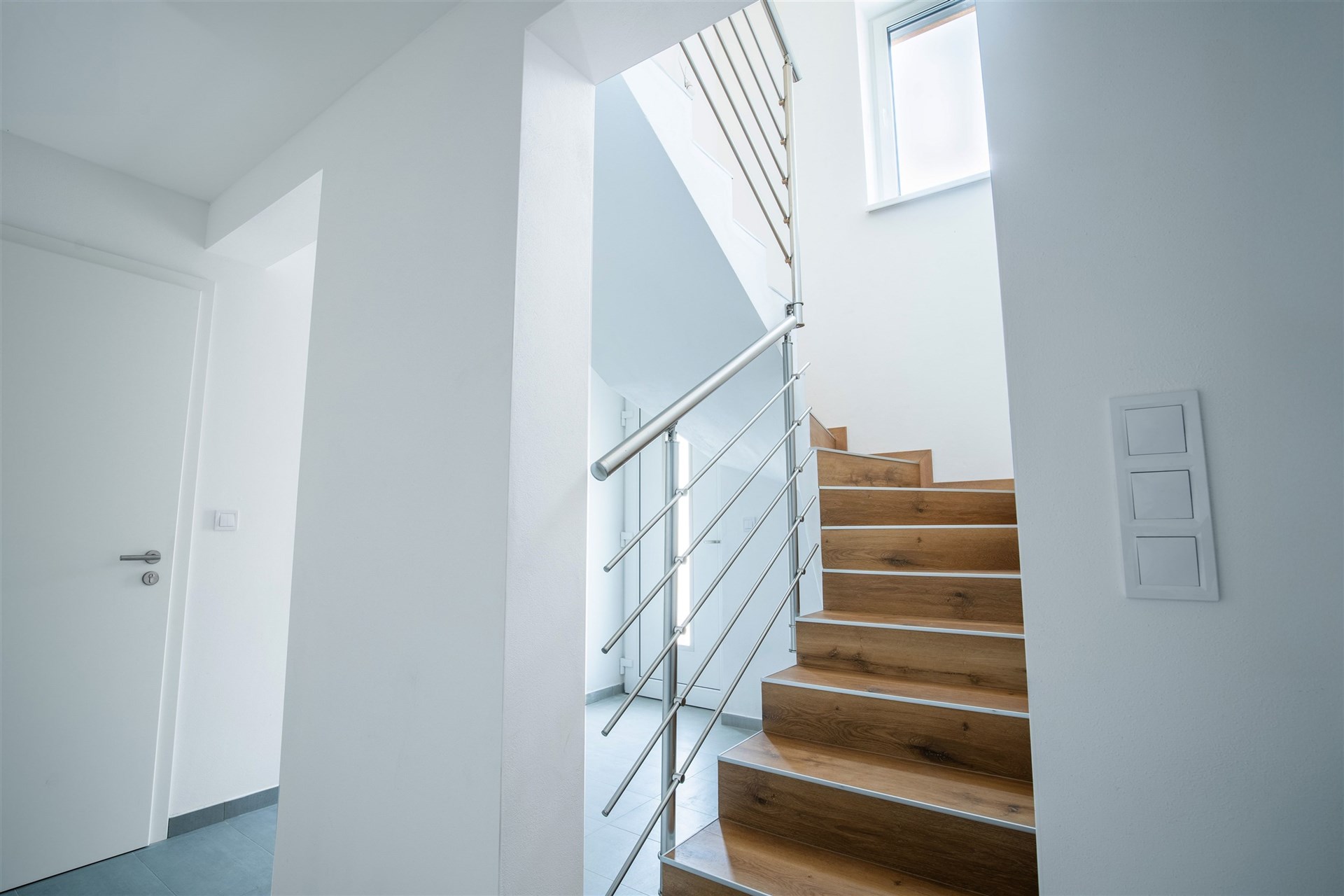 Podlahy pokryté kvalitním vinylem a dlažbou, okna s trojskly pro skvělou tepelnou a zvukovou izolaci.