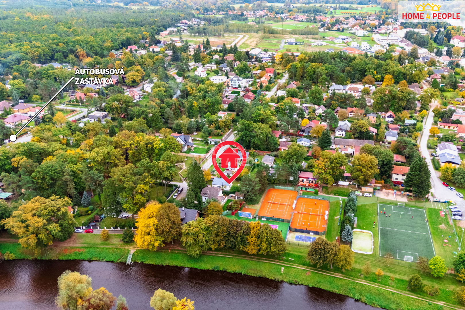 Dům se nachází v klidné lokalitě obce Káraný v těsné blízkosti řeky Jizery, ale není v záplavové zóně. Perfektní dojezdová vzdálenost do Prahy, 20 min. autem na Černý Most. Do Brandýsa nad Labem je to pouhých 10 min. autem a autobus č. 666 jezdí každou hodinu. V obci se nachází mateřská školka, tato lokalita vhodná pro mladé rodiny s dětmi.