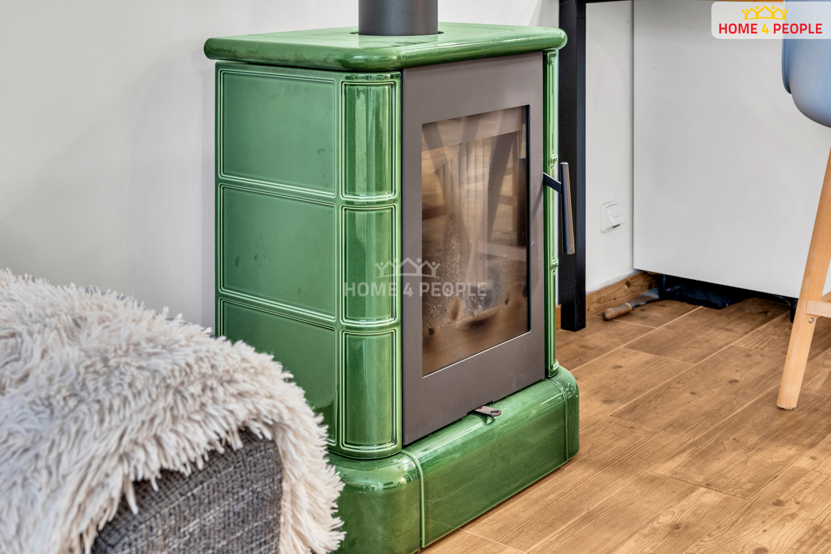 Dominantou domu je kuchyň s obývacím pokojem s kachlovými kamny na dřevo což dodává krásnou atmosféru celému domu. Dále najdete dvě ložnice, krásnou koupelnu s vanou a wc.