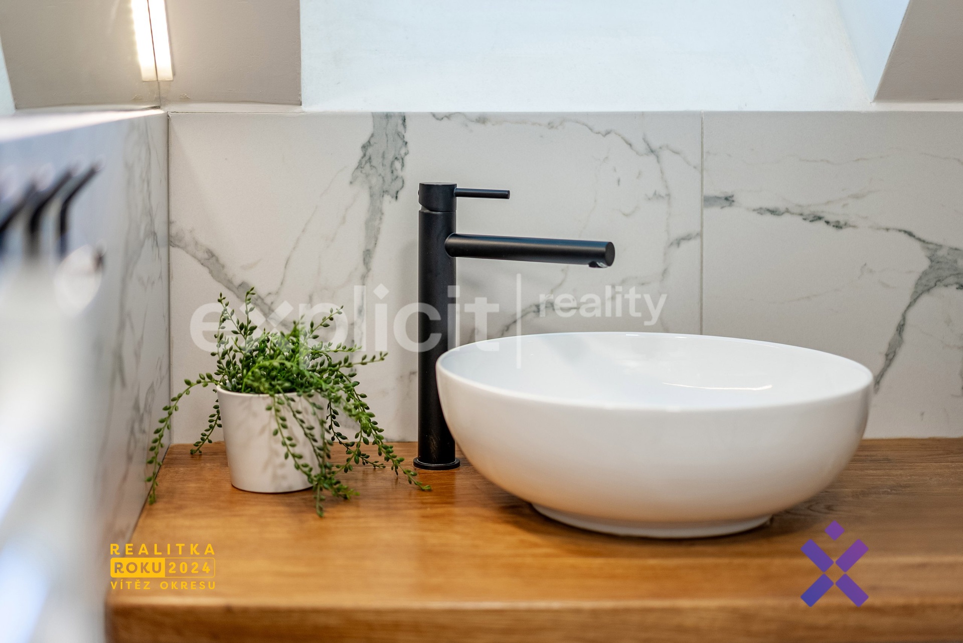 Interiér byl navržen s důrazem na moderní design a kvalitní provedení. Při rekonstrukci byly použity vysoce kvalitní materiály a celý apartmán je ve výborném, udržovaném stavu. Podlaha je vyrobena z masivního dubového dřeva. Dům, ve kterém se apartmán nachází, prošel kompletní rekonstrukcí před dvěma lety, je zateplený a společné prostory jsou ve výborném stavu díky aktivnímu fondu oprav.