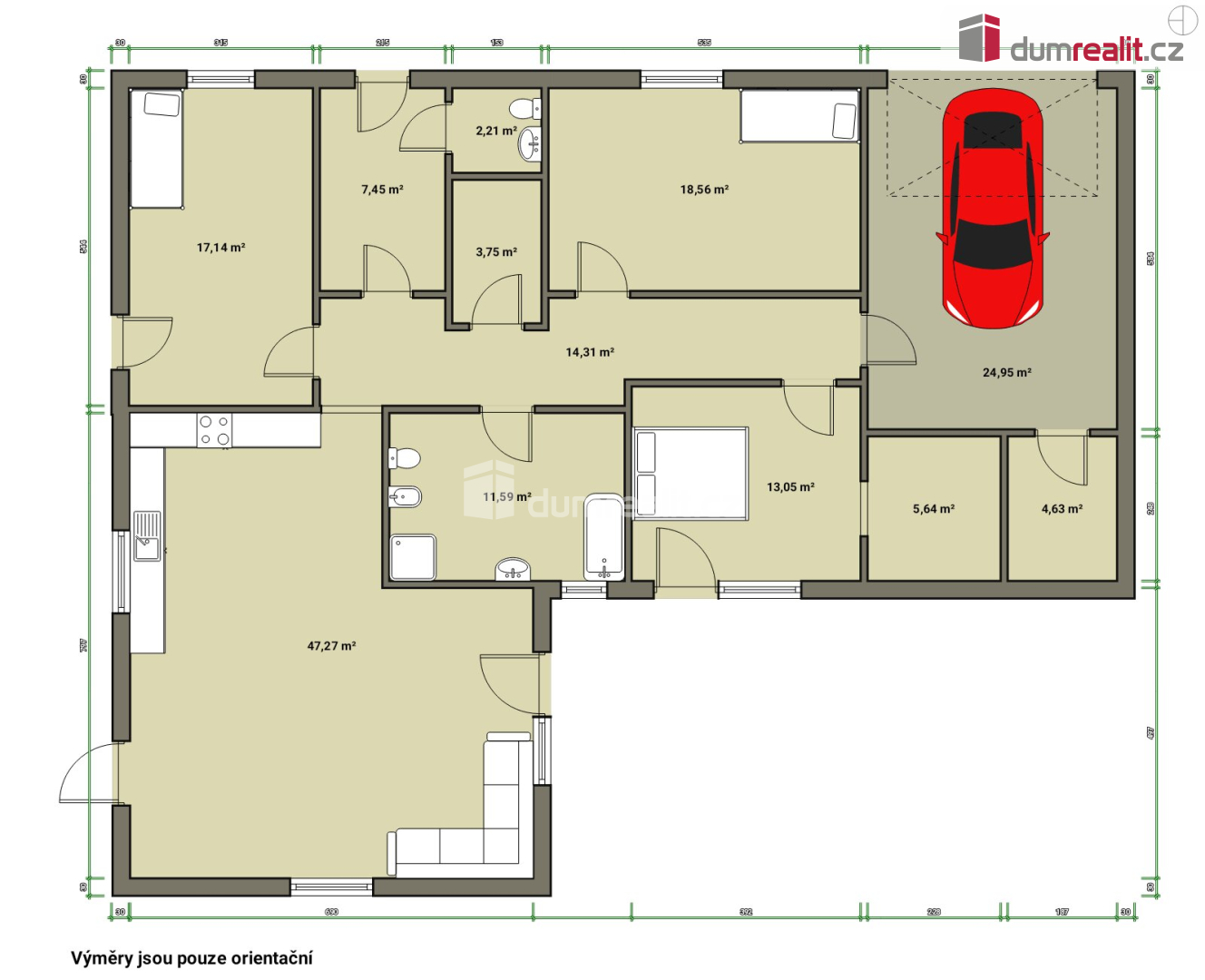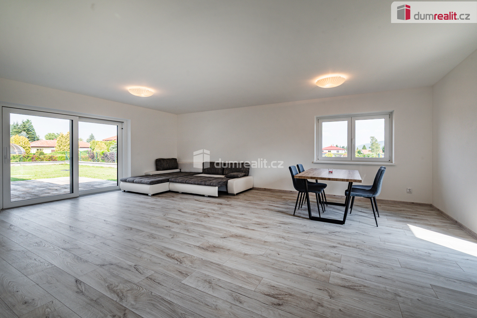 Naše společnost Vám zprostředkuje koupi krásného právě dokončeného domu typu Bungalov do tvaru L v jedné z nejhezčích lokalit Zlatý Kopeček v Karlových Varech. Dům obklopuje zarovnaný pozemek s dokončeným plotem o celkové rozloze 898 m² z čehož 215 m² je zastavěná plocha. Řádně zkolaudovaný a dokončený dům stavěný z pálených broušených cihel KLIMATHERM 40CB WPlus, nabízí dispozici 4+kk na ploše 170 m² a je napojen na všechny inženýrské sítě a to včetně vodovodního řadu, kanalizace, elektřiny a plynu. Vytápění zajišťuje plynový kotel Junkers cerapur Smart. V obývacím pokoji je komín pro umístění zdroje vytápění na tuhá paliva. Způsob topení je v celém domě podlahové. Teplá voda je připravována v bojleru, který je součástí sestavy plynového kotle, umístěném v technické místnosti. Rozložení místností: předsíň, chodba, velkorysá kuchyně spojená s obývacím pokojem a jídelním koutem o rozloze 49 m² odkud je přístupná jihovýchodně orientovaná terasa, 2 ložnice (19 m², 17 m²) z nichž jedna také vede na terasu, dále koupelna s vanou, sprchou, toaletou, bidetem, další samostatná toaleta, komora, šatna a garáž (25 m²), za kterou je umístěná technická místnost a koupelna. Tato menší technická koupelna se sprchou a toaletou za garáží je vyjímečně praktická neboť se zde může sprchovat např. pejsek po procházce či majitel po práci na zahradě. V garáži, která je dále průchozí do domu je také vlez do podkroví, které skýtá spoustu úložného prostoru s možností další přístavby. Do garáže se vjíždí sekčními garážovými vraty. Okna rodinného domu jsou izolační dvojskla. Podlaha – vrchní pochozí vrstvu podlahy tvoří plovoucí podlaha a dlažba na betonové mazanině. Strop je zateplen foukanou izolací tloušťky 400 mm. Povrchy stěn a stropů – vnitřní omítky jsou štukové, venkovní omítka je tepelně-izolační na fasádní polystyren EPS 100x50x12mm. Vodorovné konstrukce – strop je součástí střechy, je sádrokartonový a je zavěšen na vazníkovou konstrukci. Střecha – vazníkový krov, valbová střecha s betonovou střešní krytinou Bramac Classic barvy černé. Dešťová kanalizace a srážkové vody jsou svedeny do dešťové nádrže objemu 4000l na pozemku sloužící k zalévání zahrady. V lokalitě je veškerá občanská vybavenost, do pěti minut jízdy je OC Varyáda, OC Fontána. Karlovy Vary a jejich okolí jsou úžasné místo pro život i odpočinek, jsou prošpikované sítí turistických, cyklistických tras. Sportovcům je k dispozici KV Aréna, bazén a sauna Thermal, cyklostezka podél Ohře, fitness studia. Ve městě jsou samozřejmě veškeré úřady, obchody a mnoho restaurací. Cena zahrnuje provizi RK a kompletní právní servis. V případě zájmu Vám rádi doporučíme naše prověřené finanční poradce. Ev. číslo: 652308.