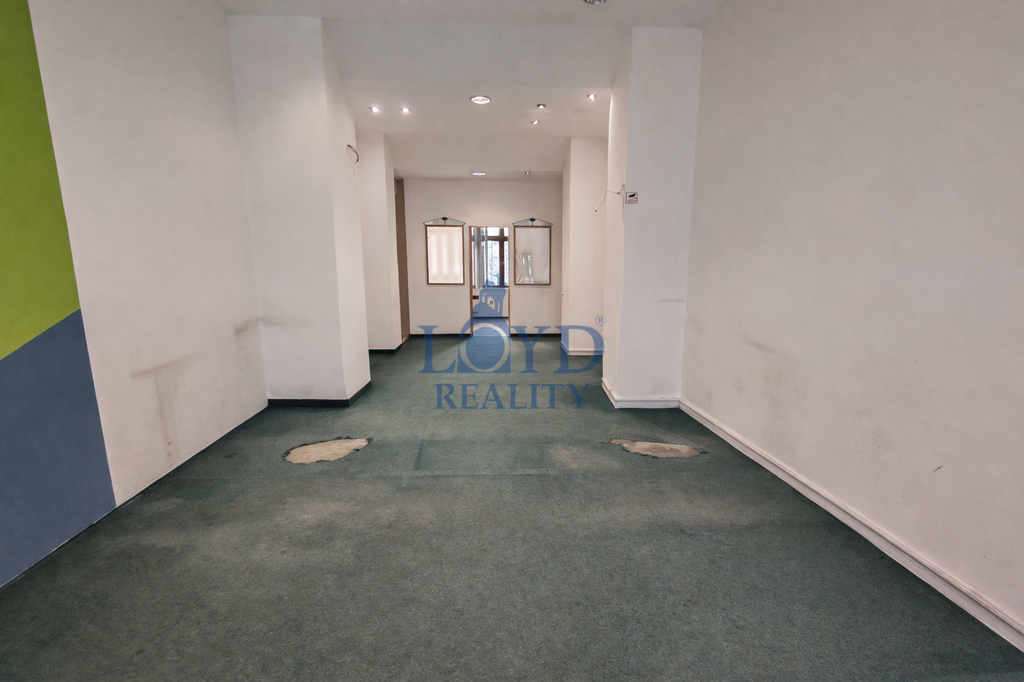Výloha do ulice přes celou šířku prostoru, v zázemí okno do dvora.