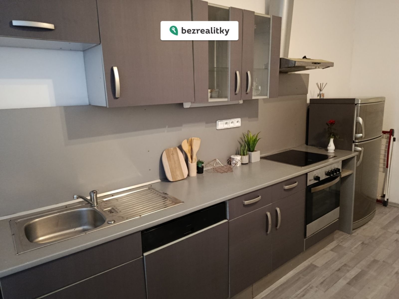 Kuchyň je plně vybavena spotřebiči – myčkou, sklokeramickou varnou deskou, troubou, lednicí a digestoří. Koupelna s prostorným sprchovým koutem a oknem nabízí denní světlo i možnost přirozeného větrání.
