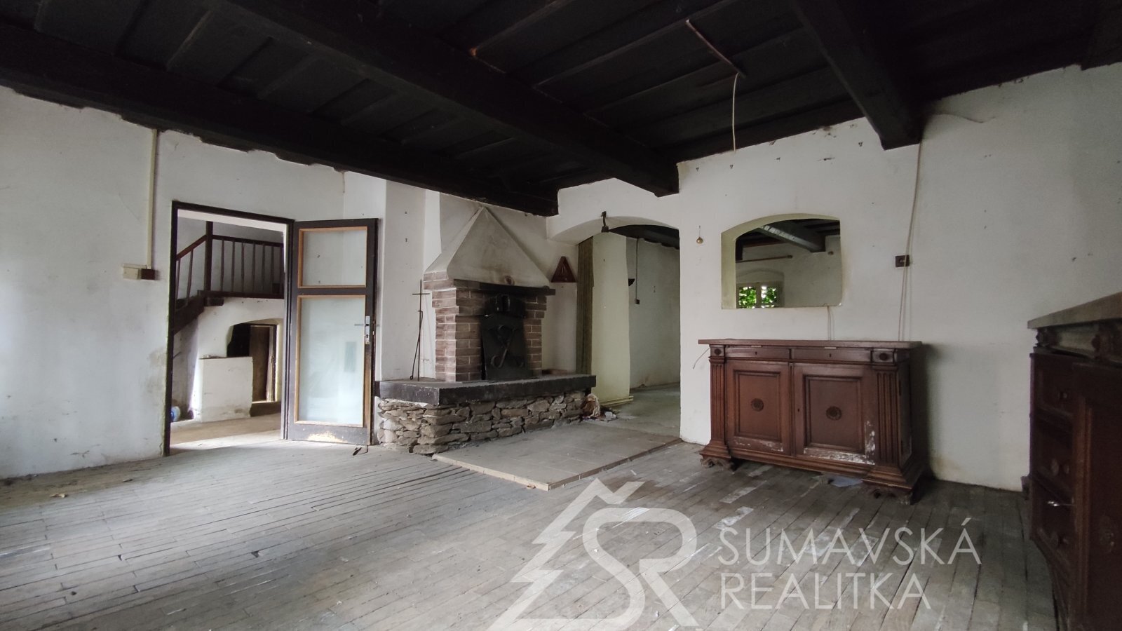 Popis: původní měšťanský dům s historií, o níž svědčí řada prvků jako zázrakem zachovaných v interiérech. Dům nevykazuje statické poruchy, ani nepřiměřenou vlhkost–i když nebyl v posledních letech obýván. Pod střechou z plechových pásů je krov v dobrém stavu. Dřevěná okna i podlahy původní. Mohutné obvodové a nosné zdivo, zaklenutí a niky, černá kuchyně, trámové stropy – to vše vytváří autentické prostředí – jako by dům chtěl vyprávět svůj příběh…
