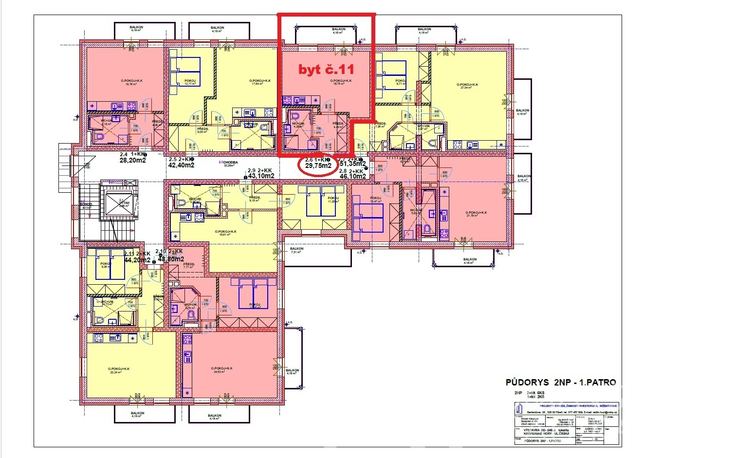 | Dispozice/podlahová plocha: | 1+kk/30 m² |