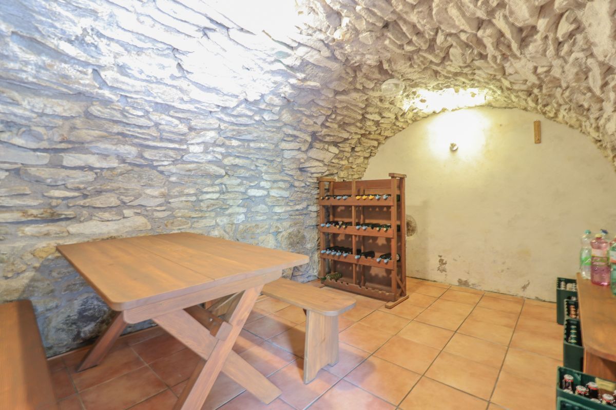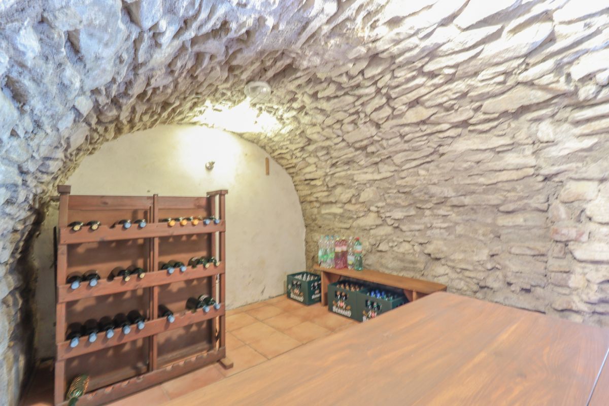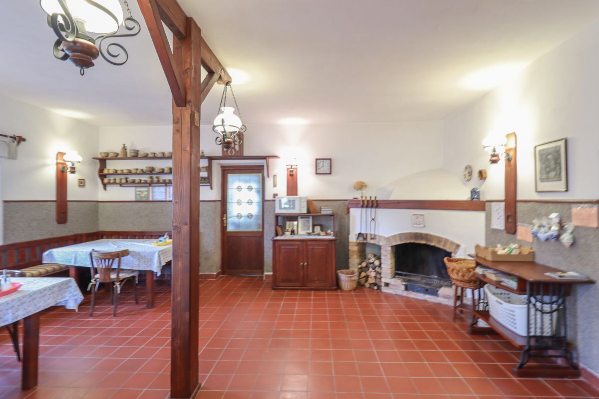 Na dům navazuje zastřešená terasa s venkovní kuchyní z bývalé stodůlky (48m2) volně průchozí z domu „suchou nohou“, kde můžete vnímat ticho a vůně lesa, nebo jen tak vypnout a pozorovat přírodu. V nepříznivém období lze využít stylového klenutého sklepa pro posezení s přáteli.