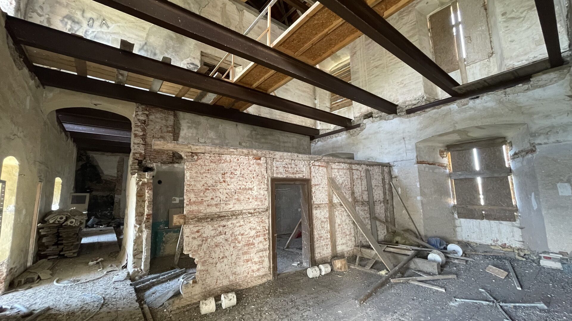 Zámek: jedná se o původně raně barokní budovu s hlavní středovou částí a dvěma krátkými bočními křídly postavenou do tvaru písmene U. Budova má zastavěnou plochu 829 m2, 3NP a nevyužité podkroví. V r. 2017 byla zahájena kompletní rekonstrukce, ale nebyla dokončena. Byla položena nová střešní krytina (pálená bobrovka), opraven krov, opravena větší část fasád, ale interiér budovy je z části vybourán: strop nad 1.NP je klenutý, v bočních křídlech jsou původní dřevěné stropy, další stropy nejsou provedeny, jsou zde pouze osazeny ocelové I profily.