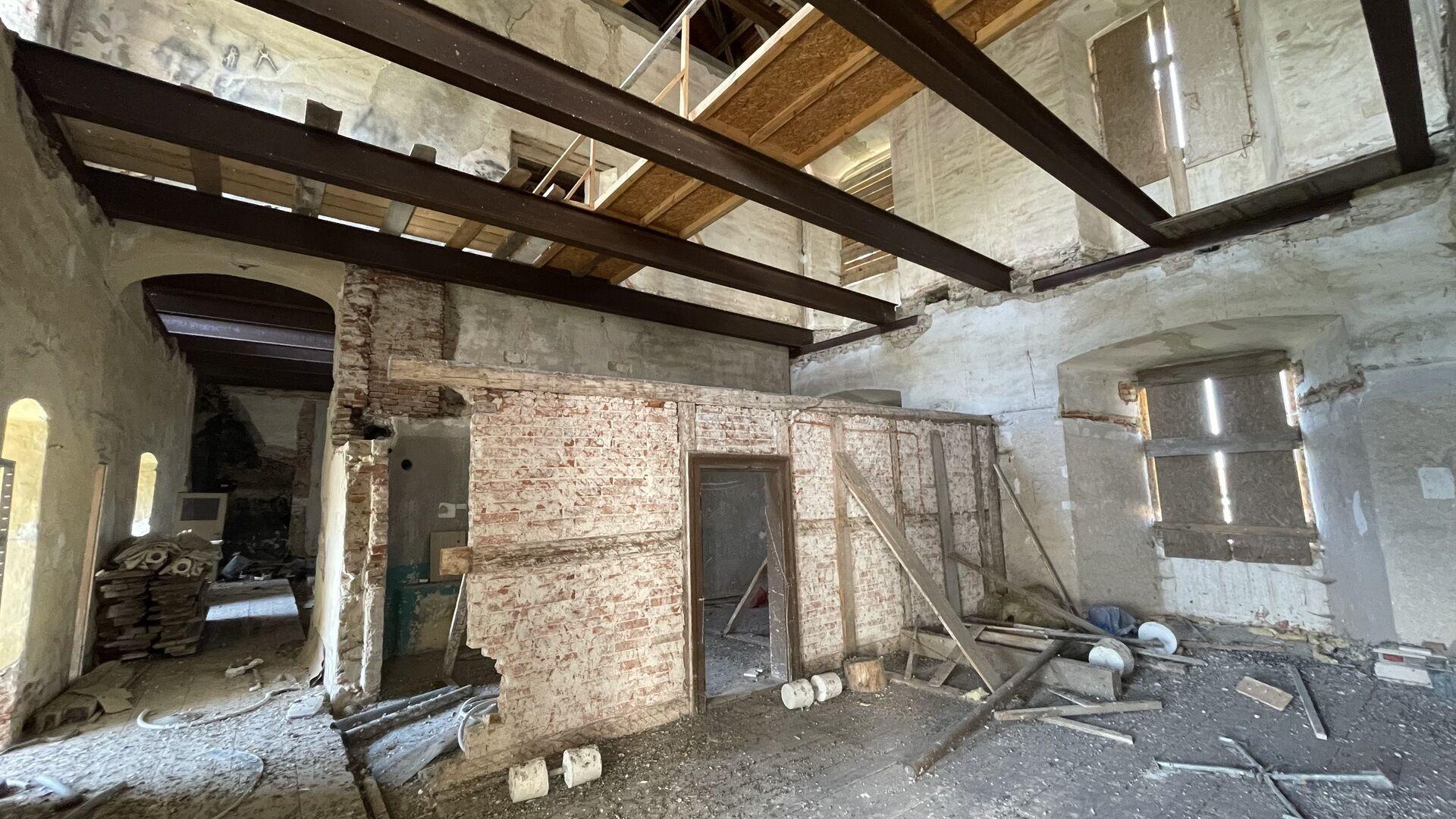 Zámek: jedná se o původně raně barokní budovu s hlavní středovou částí a dvěma krátkými bočními křídly postavenou do tvaru písmene U. Budova má zastavěnou plochu 829 m2, 3NP a nevyužité podkroví. V r. 2017 byla zahájena kompletní rekonstrukce, ale nebyla dokončena. Byla položena nová střešní krytina (pálená bobrovka), opraven krov, opravena větší část fasád, ale interiér budovy je z části vybourán: strop nad 1.NP je klenutý, v bočních křídlech jsou původní dřevěné stropy, další stropy nejsou provedeny, jsou zde pouze osazeny ocelové I profily.
