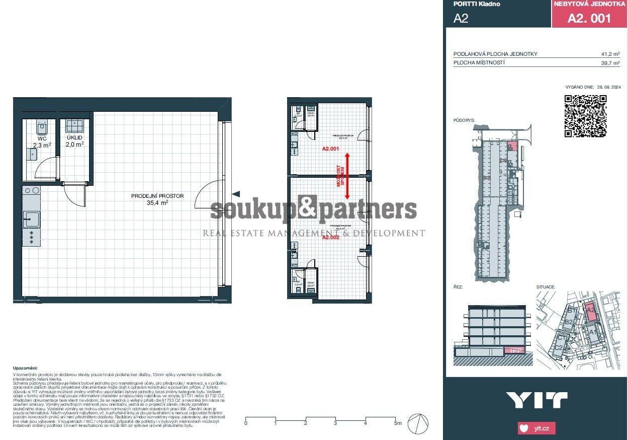 Obchodní prostor s výlohami - 41 m2, přízemí do ulice v novém rezidenčním projektu PORTTI Kladno.