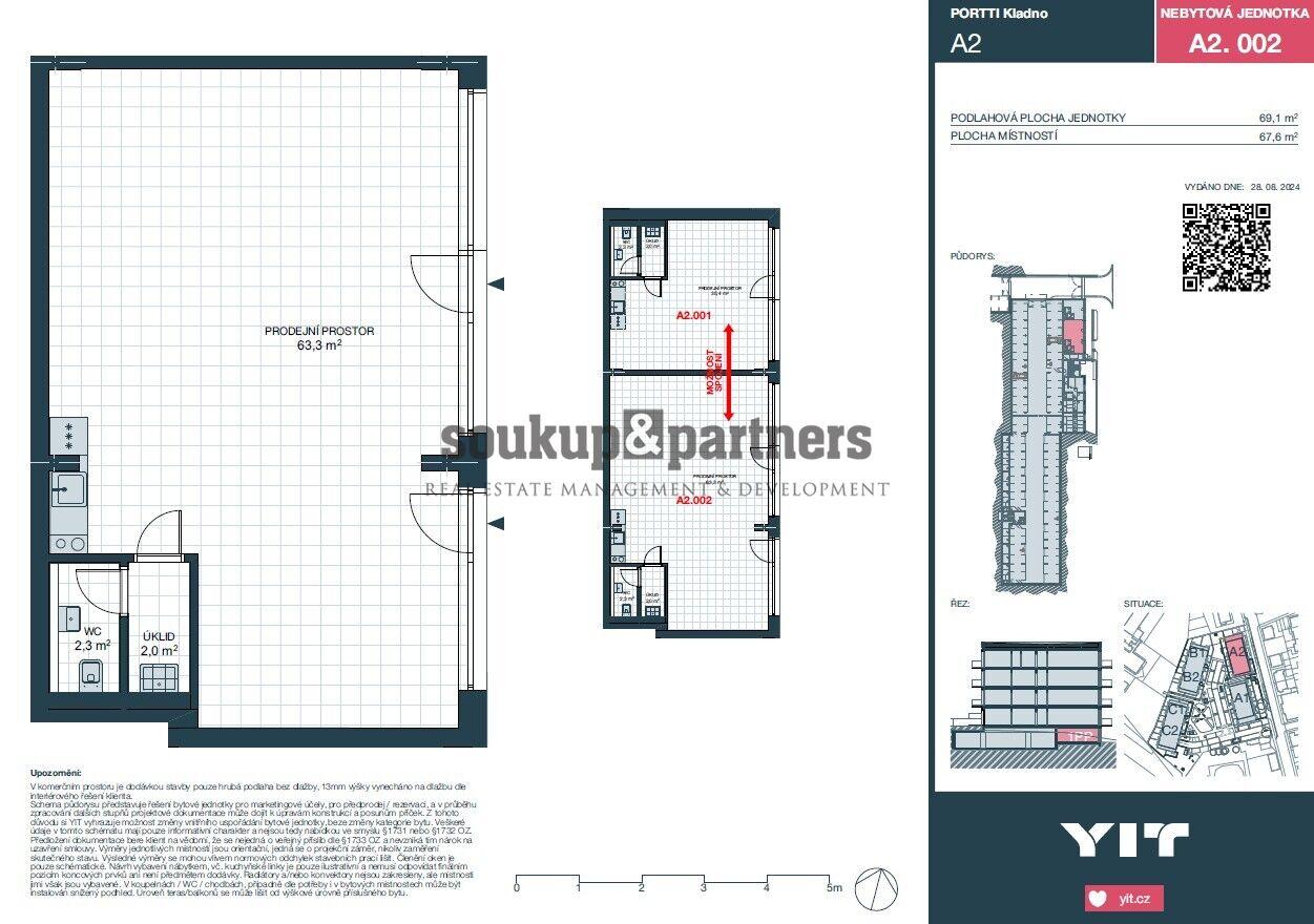 Obchodní prostor s výlohami - 69 m2, přízemí do ulice v novém rezidenčním projektu PORTTI Kladno.