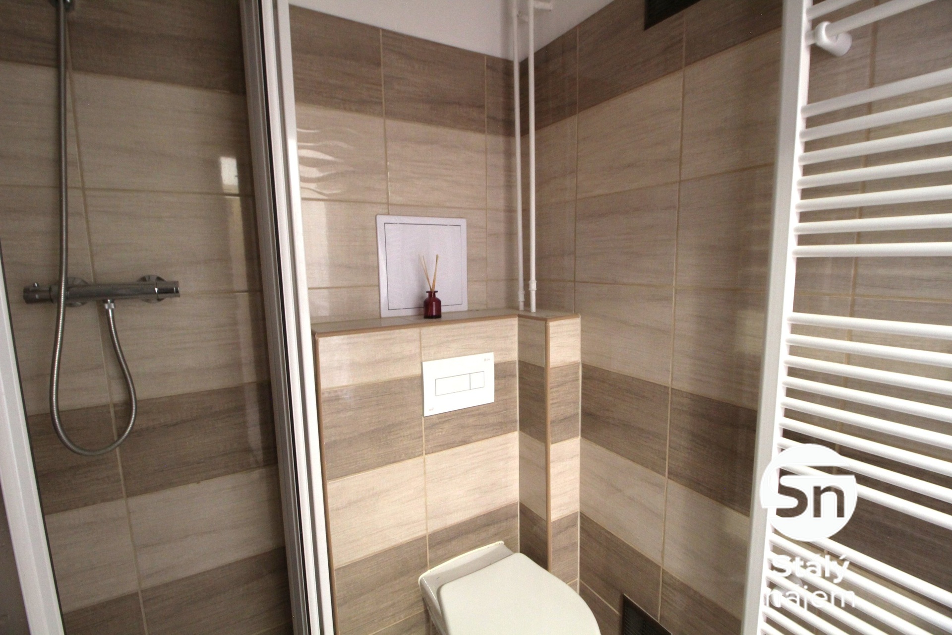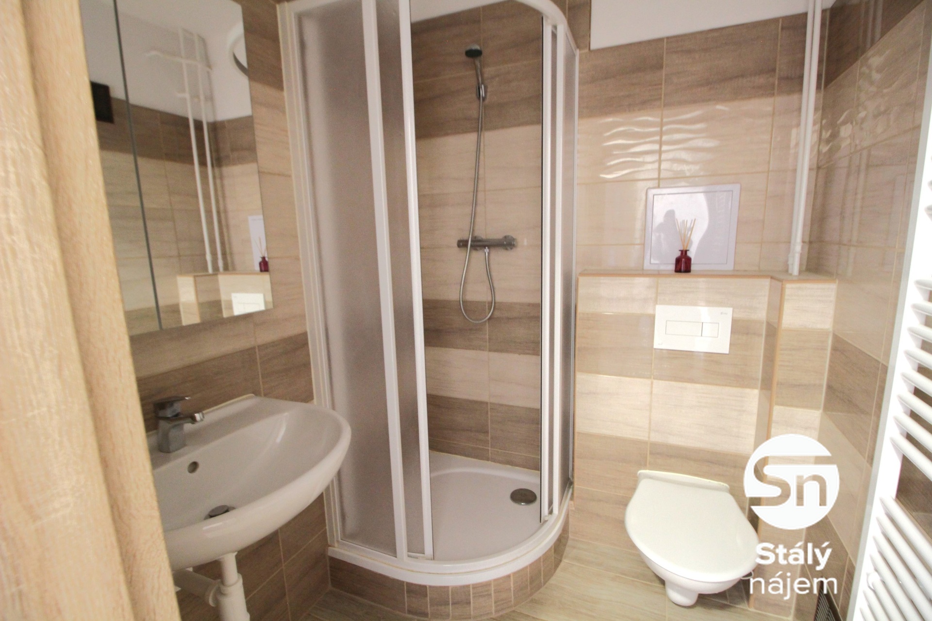 Tento pěkný byt je pronajímán se zařízenou kuchyňskou linkou, součástí které je plynový sporák, elektrická trouba, lednice s mrazákem, pračka a digestoř. Druhý pokoj dobře poslouží jako obývací místnost s částí na spaní a relaxaci. Zrekonstruovaná koupelna je vybavena sprchovým koutem, skříňkou se zrcadlem a toaletou.