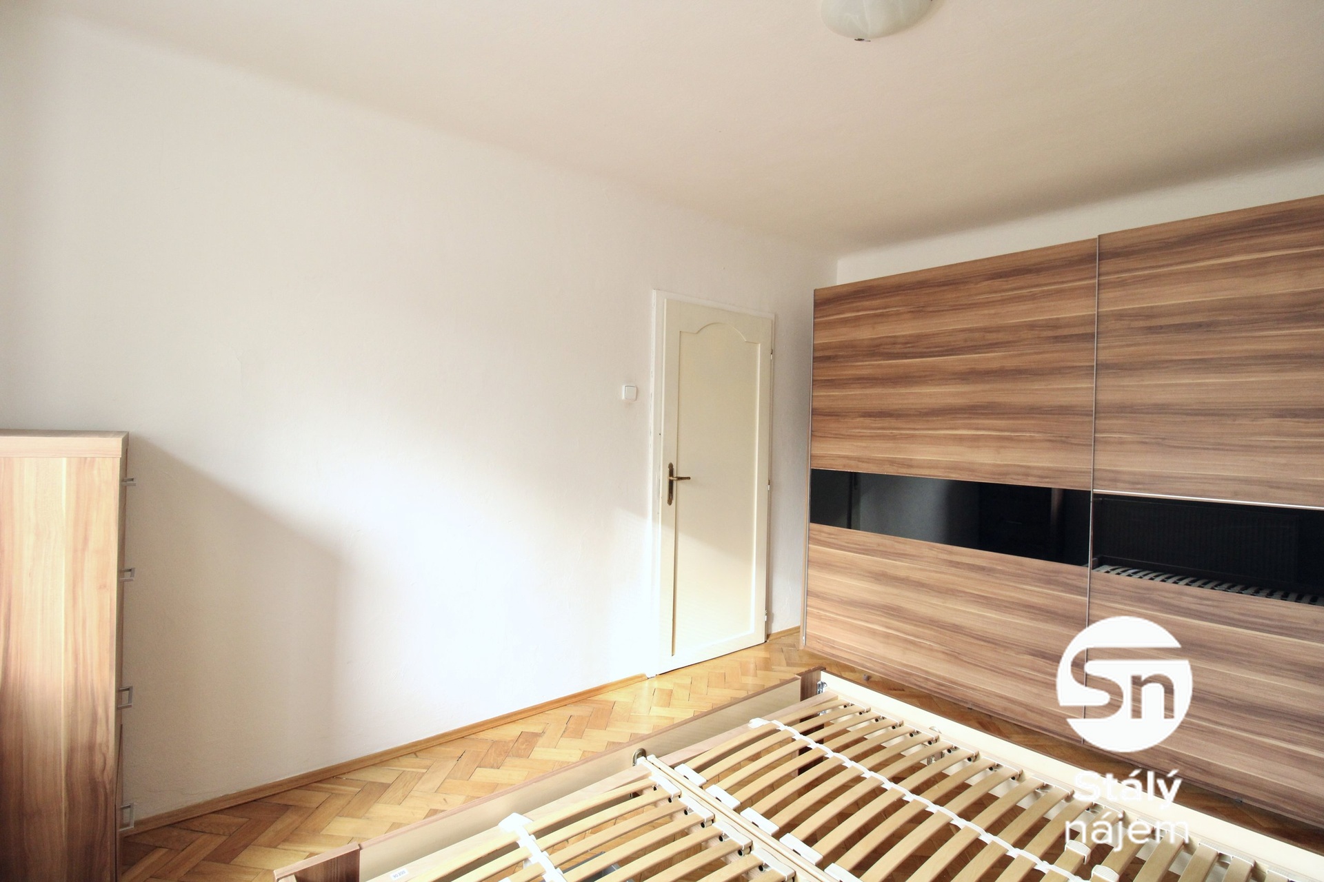 Z chodby bytu se dostanete do koupelny s toaletou. Ta disponuje vanou. Další místností je zrekonstruovaná kuchyň. Naleznete zde kuchyňskou linku s plynovým sporákem, el. troubou. Další pokoj je nezařízený a dá se z něj vejít na balkón s výhledem do zeleně. Poslední místností je ložnice s prostornou skříní se spoustou úložného pokoje. K bytu náleží sklep. Vybavení bytu zobrazené na fotografiích nemusí odpovídat skutečnému vybavení bytu.