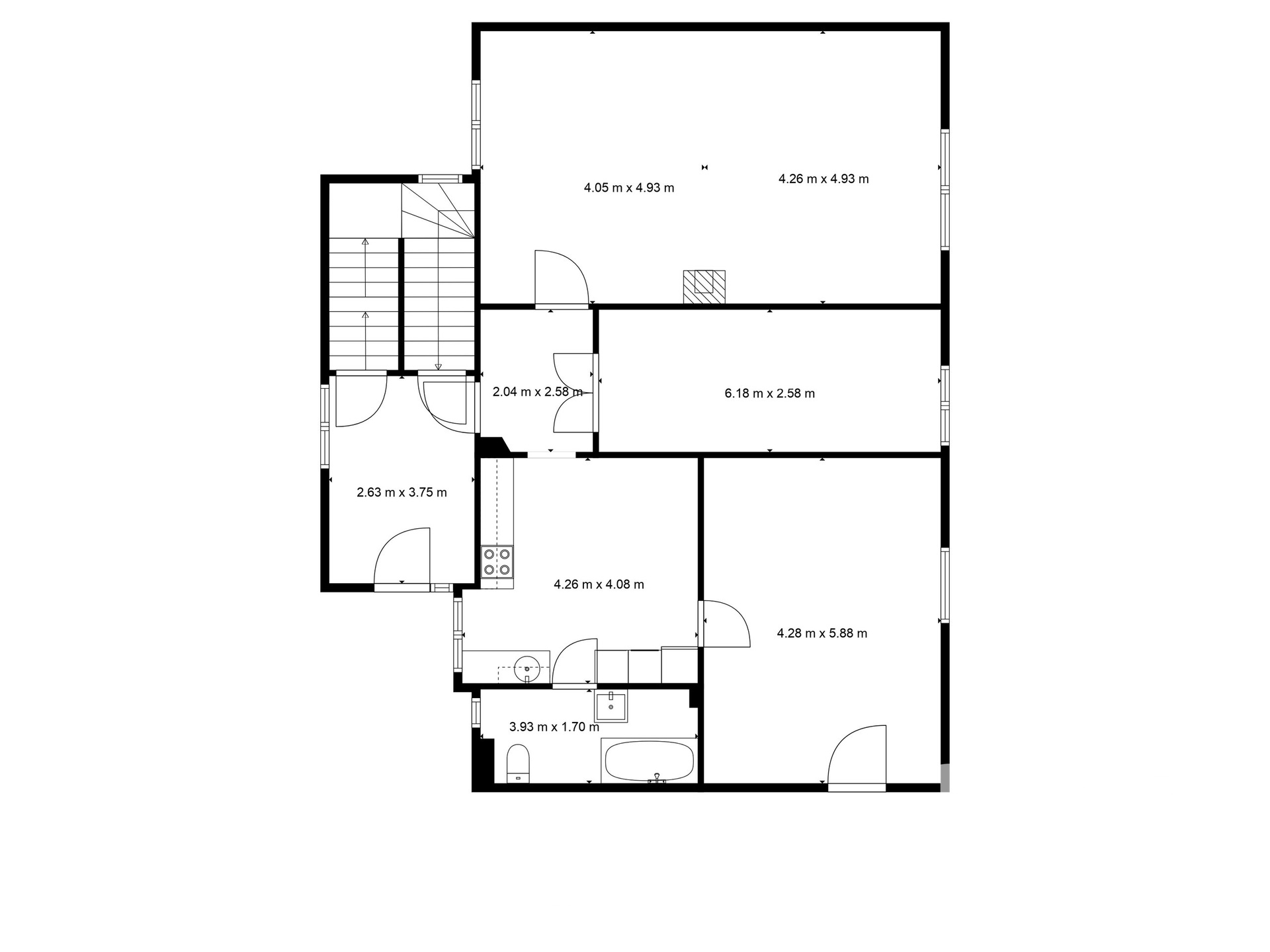 * Klasická cihlová konstrukce zateplená polystyrenem a osazená plastovými okny pro vynikající tepelnou izolaci a minimalizaci hluku z okolí