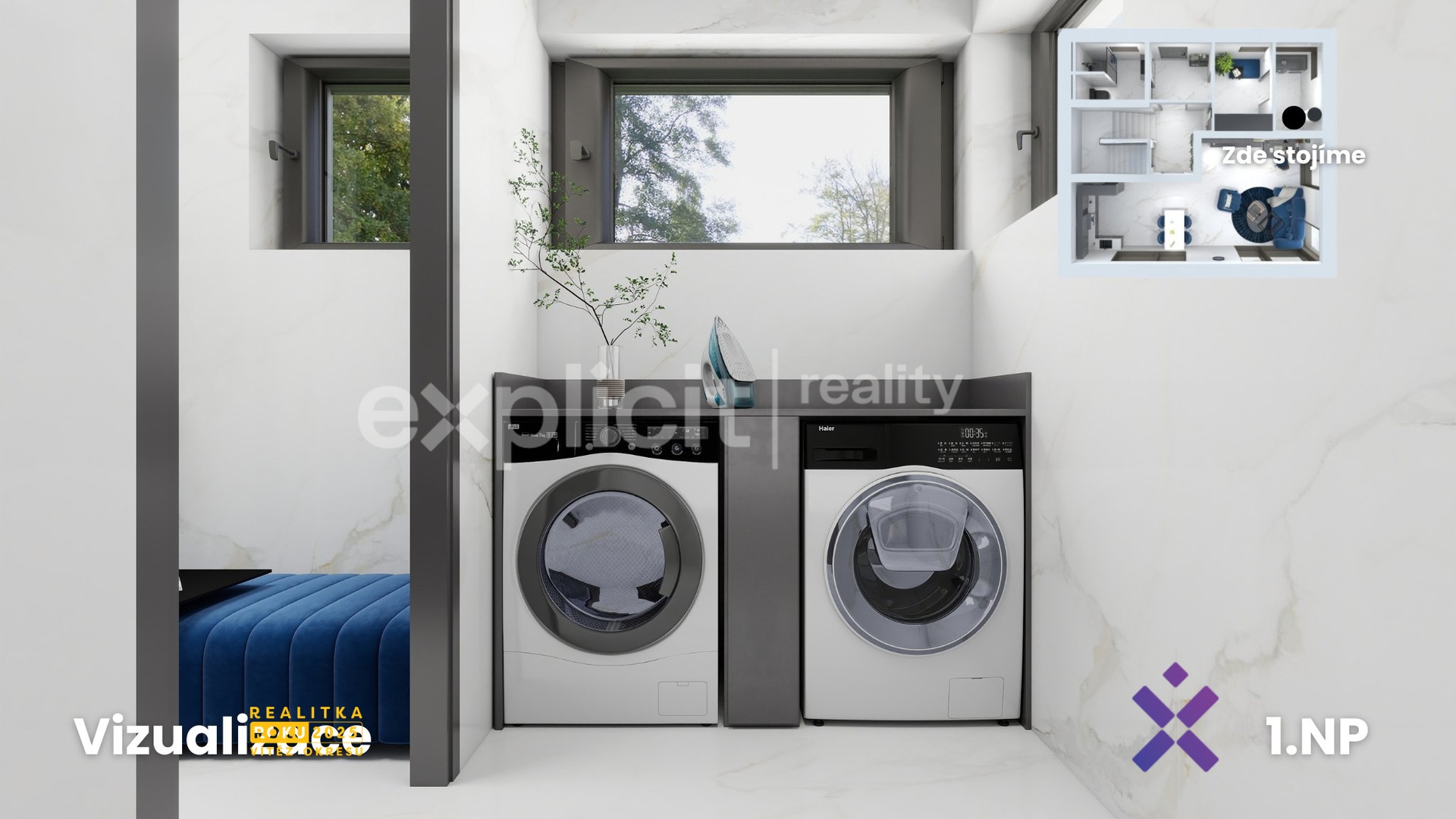 - každý dům má samostatné technické zázemí (pro pračku i sušičku), plynový kotel, rekuperaci i retenční nádrž