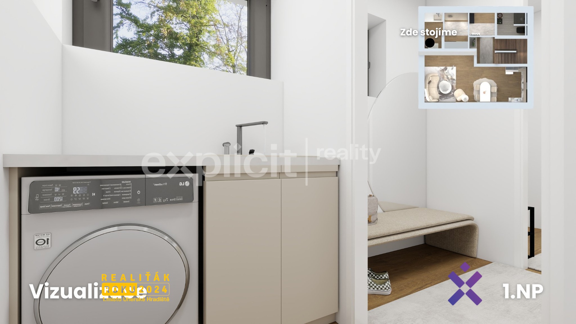 - každý dům má samostatné technické zázemí (pro pračku i sušičku), plynový kotel, rekuperaci i retenční nádrž