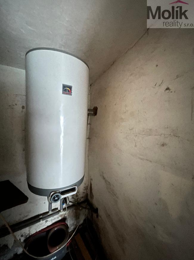 Ze zádveří je vstup do kotelny, kde je umístěn kotel a zároveň je zde toaleta s umyvadlem.