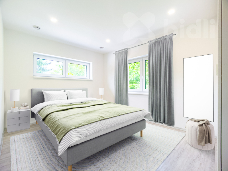 Dům je okamžitě připravený k nastěhování, vybavený je kuchyňskou linkou a zařízenými koupelnami v nadčasovém designu. Okna kryjí elektronicky ovládané venkovní žaluzie.