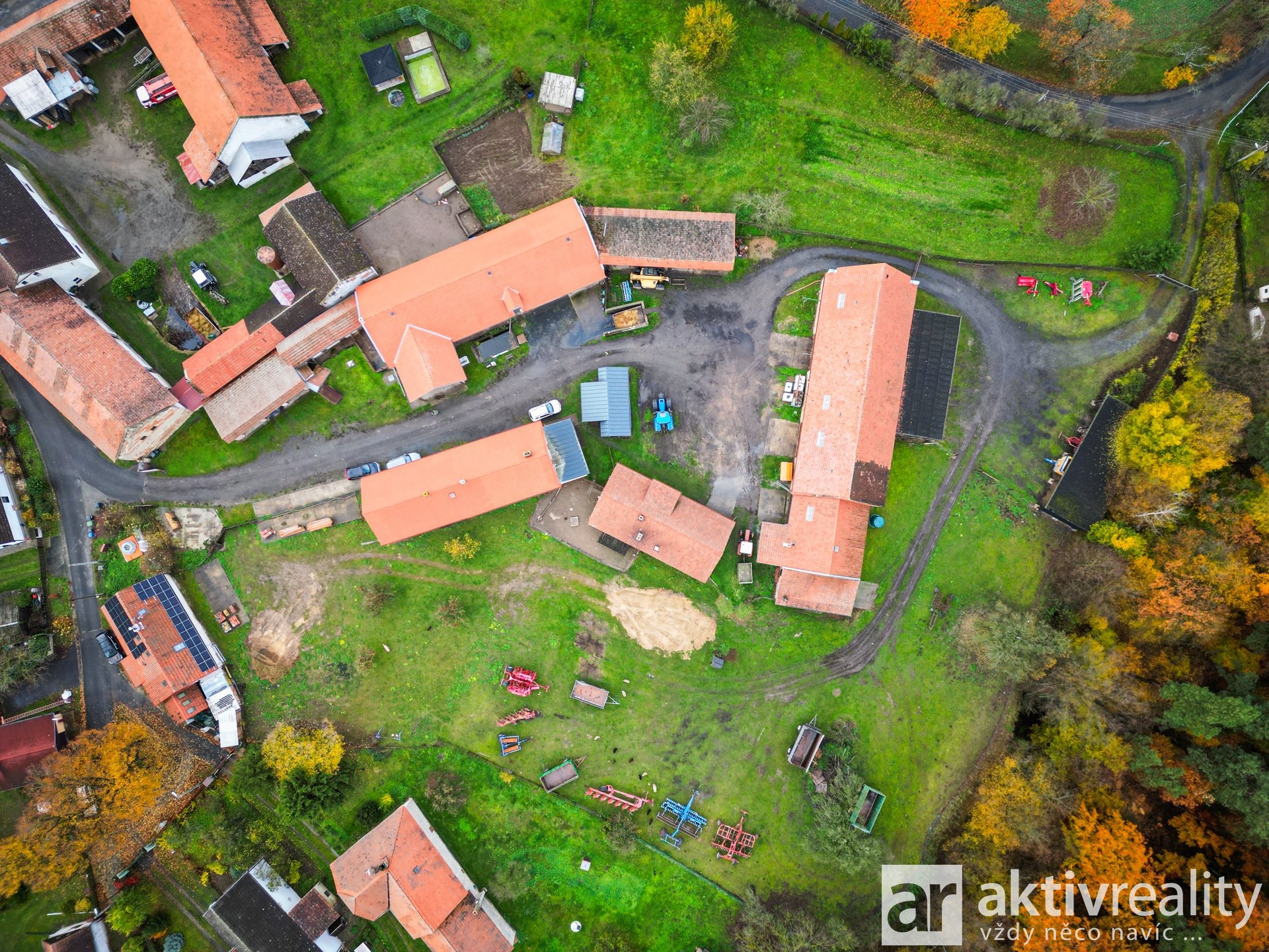 Areál nabízí ideální podmínky pro spojení bydlení s podnikáním, řemeslnou činností nebo venkovským projektem.