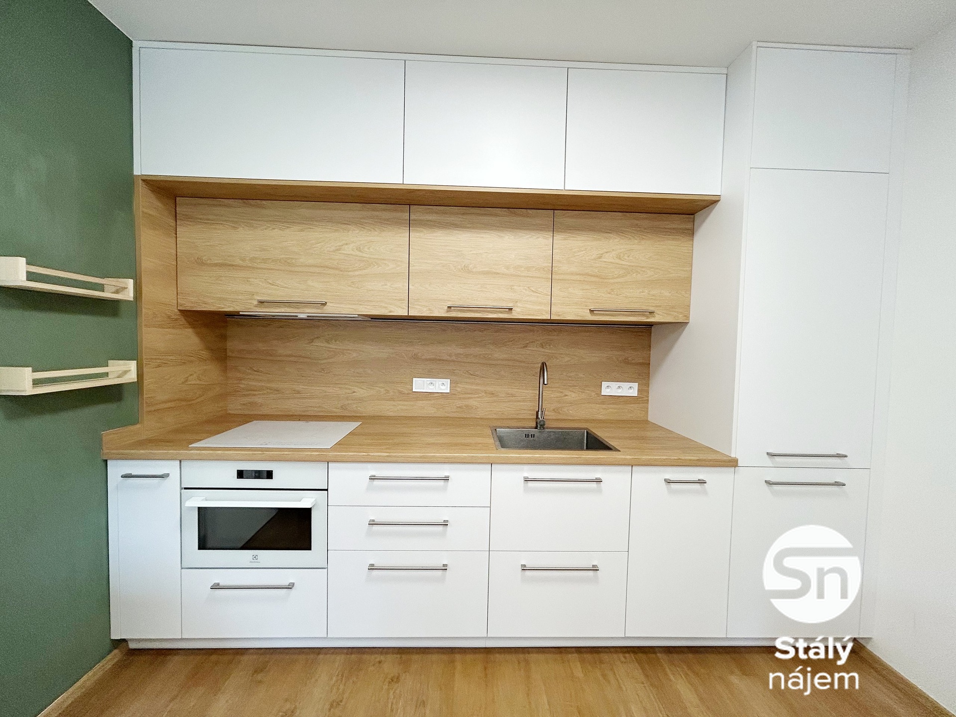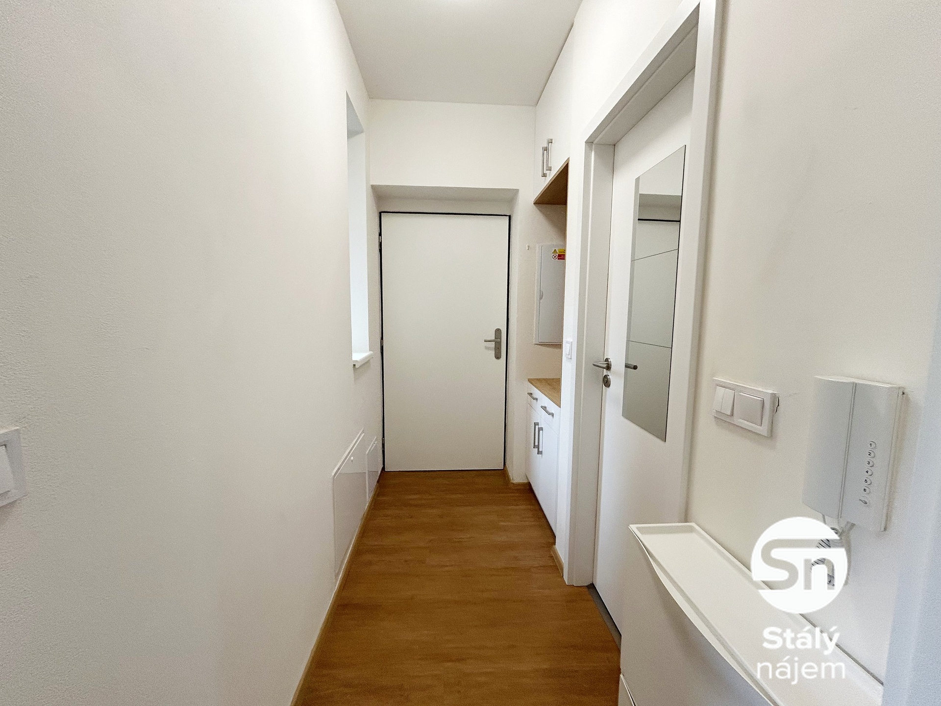 Byt je částečně vybavený, obývací pokoj s rohovou sedačkou je propojen s moderní kuchyňskou linkou a umožňuje přímý vstup na terasu a do předzahrádky orientované do tichého vnitrobloku — ideální místo pro relaxaci. Ložnice je vybavena manželskou postelí a prostornou vestavěnou skříní. V koupelně je k dispozici sprchový kout, toaleta a pračka.