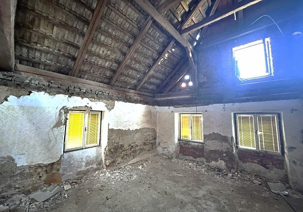 Samostatně stojící objekt vesnického domu s provozním zázemím, příslušenstvím a navazujícím pozemkemdvorem o celkové výměře 246 m2 v klidné zastavěné části obce. Přízemní částečně podsklepený objekt původního vesnického stavení zděné smíšené konstrukce o stávající dispozici prostor 2+1 s příslušenstvím v přízemní části stavby, bez stávajícího využití podkrovních prostor s možností realizace rekonstrukce a kompletní přestavby objektu dle stávající projektové dokumentace a vydaného stavebního povolení. Objekt je ve stádiu vyklizení prostor, stržení původních povalových stropů, demontáži veškerých provozních zařízení a koupelnového vybavení, před zahájením rekonstrukce a přestavby objektu dle představ nového vlastníka. V objektu jsou zachovány původní stavební prvky, nosné konstrukce, příčky a krovová konstrukce k následné realizaci kompletní rekonstrukce a přestavby. Objekt RD je delší dobu neobydlen a nevyužíván ke svému účelu, naposledy užíván k trvalému seniorskému bydlení, nyní připraven k okamžitému předání a zahájení rekonstrukce. Na objekt RD navazuje vlastní plocha nezastavěné části stavebního pozemku, tj. malá zahrádka a dvůr s parkovacím prostranstvím, zpevněnými venkovními úpravami a oplocením pozemku. Nemovitost je situována v mírně svažitém terénu s orientací obytných prostor objektu na jihovýchod s vlastním vjezdem a vstupem z asfaltové komunikace s vedením kompletních inženýrských sítí, s okolní zástavbou vesnických rodinných domů. Třída ENB „G“ (průkaz nezpracován). Nabízená nemovitost je vhodná pro zájemce, kteří hledají venkovskou chalupu s malým pozemkem k provedení rekonstrukce dle vlastních představ s možností následného užívání k trvalému, či rekreačnímu bydlení v klidné lokalitě Městysu Koloveč s dostupností základních služeb, infrastruktury a kompletní vybaveností. Předností nabízených nemovitostí je velikost a dispozice vnitřních prostor objektu s potenciálem možného rozšíření provozních a podkrovních prostor, existence kompletní projektové dokumentace s vydaným platným stavebním povolením k rekonstrukci objektu a lokace v klidném venkovském prostředí v obci s kompletní vybaveností. Dispozice: snížené přízemí parkovací prostor, sklep, skladovací prostor, přízemí vstup, chodba, 3x prostor, 2x provozní prostory původní koupelny a WC,podkroví volný půdní prostor k realizaci komplet obytné vestavby. Přístup z veřejné zpevněné komunikace se vstupem a vjezdem na pozemek, elektřina 220/380, napojeno na veřejný vodovod, odkanalizováno do veřejné splaškové kanalizace (nová přípojka k napojení), napojeno na rozvod plynu a telekomunikační rozvody. Vytápění: bez stávajícího topného zařízení (původní lokální na tuhá paliva). Zastavěná plocha RD: 128 m2, užitná plocha objektu RD cca: 105 m2, plocha pozemku: 246 m2