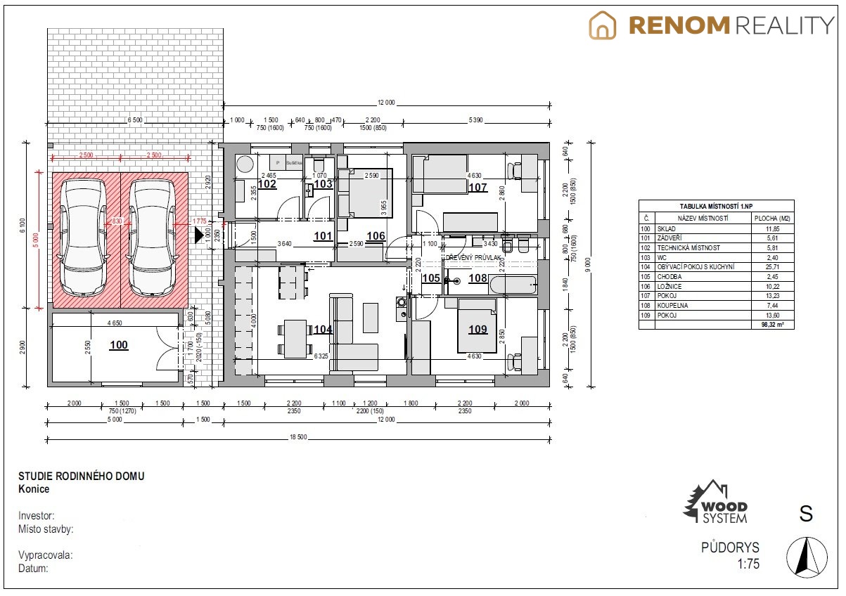 Prodej rodinného domu o dispozici 4+kk se zahradou v obci Konice, ul. Burianova, okr. Prostějov. Jedná se o samostatně stojící dřevostavbu postavenou odbornou a velmi dobře klientsky hodnocenou stavební společností WOOD SYSTEM s.r.o. (k dispozici fotodokumentace během výstavby, vč. záručního servisu 1 rok po dokončení stavby). Nemovitosti stojí na exkluzivním, klidném místě s výhledem na lesy. U domu naprojektováno kryté venkovní stání pro dvě vozidla. Hotová základová deska s přípravami pro zahradní domek/sklad. Vylitá základová deska pro prostornou terasu s orientací na Jih.