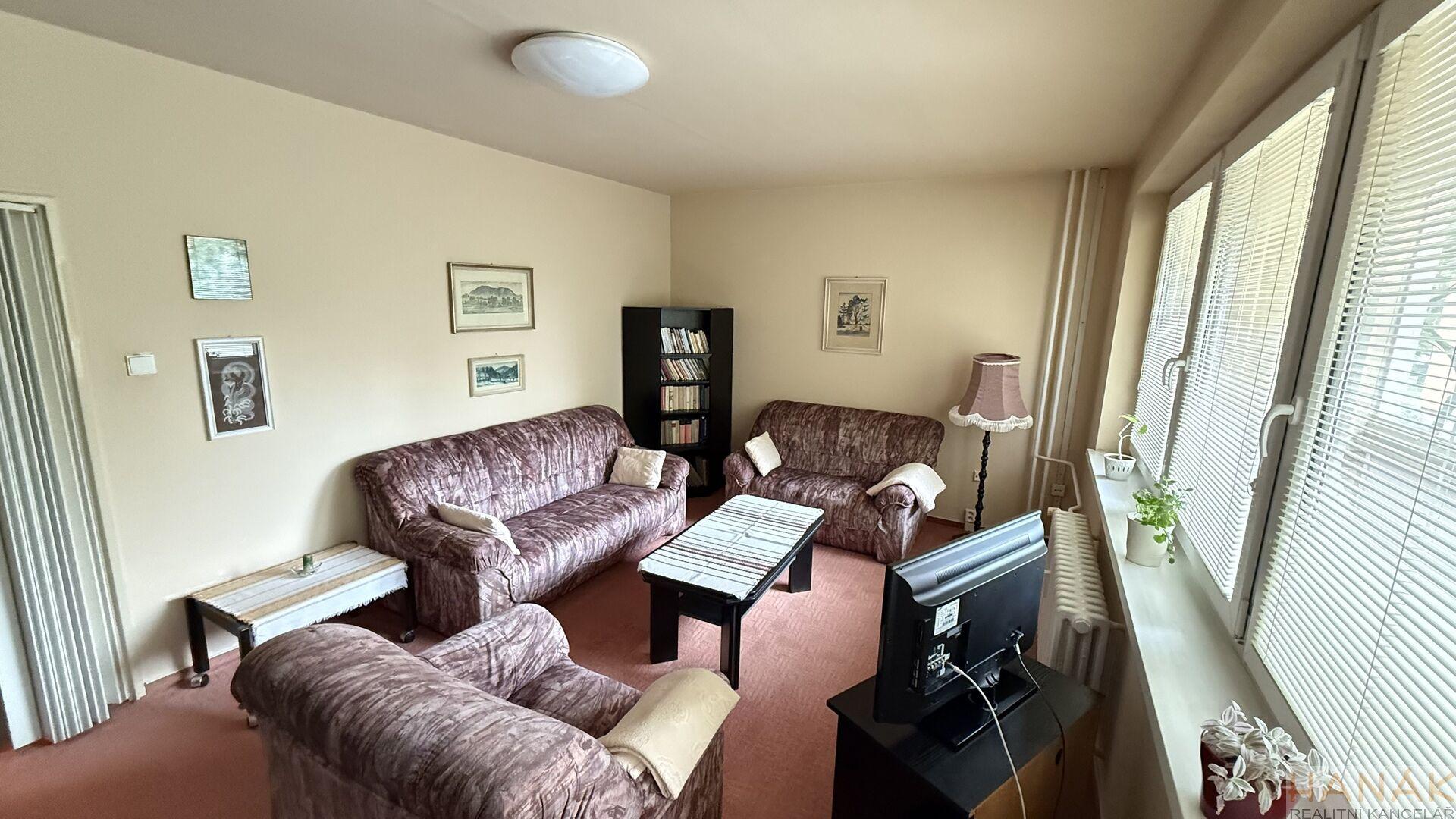 Jedná se o krajní byt s výhledem z lodžie do zeleně, což zaručuje dostatek soukromí a příjemné prostředí pro odpočinek. Všechny pokoje jsou neprůchozí, přístupné z prostorné centrální předsíně ( s vestavěnými skříněmi ). Zasklená lodžie má přímý vstup z obývacího pokoje. Byt je převážně v původním udržovaném stavu, ideální pro rekonstrukci dle vlastních představ.