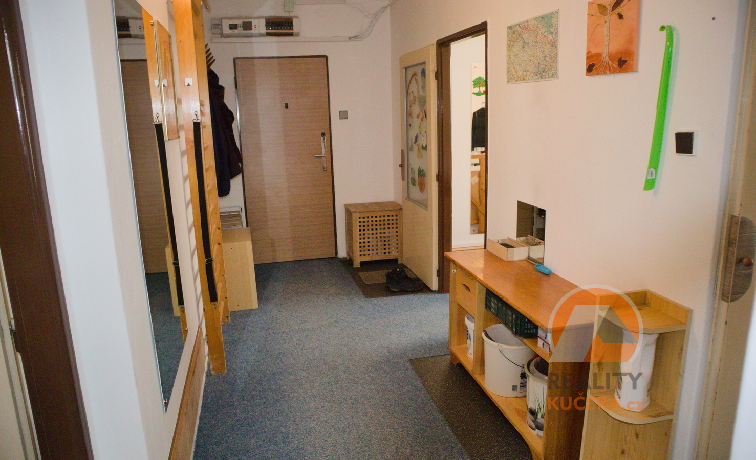 Samotný byt je v 1 nadzemním podlaží. Jeho dispozice je 2+1 o výměře cca 53m2. Byt je v původním stavu, dobře udržovaný. Elektřina v malé části v mědi, vetší v hliníku. Vytápění bytu je přímotopy. K bytu náleží také užívání půdy. Po dohodě s družstvem je možné dokoupit dvě další místnosti.