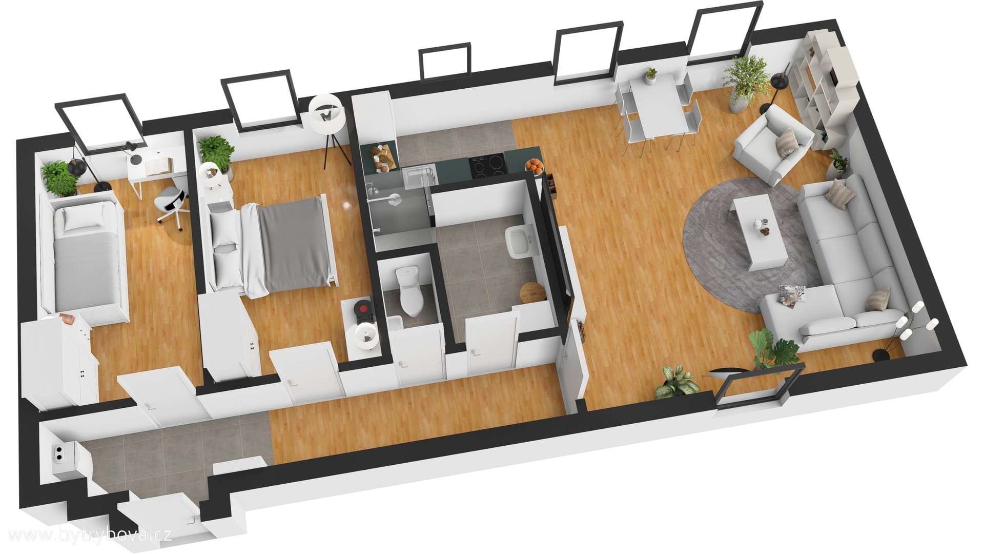 | Dispozice/podlahová plocha: | 3+kk/71 m² |