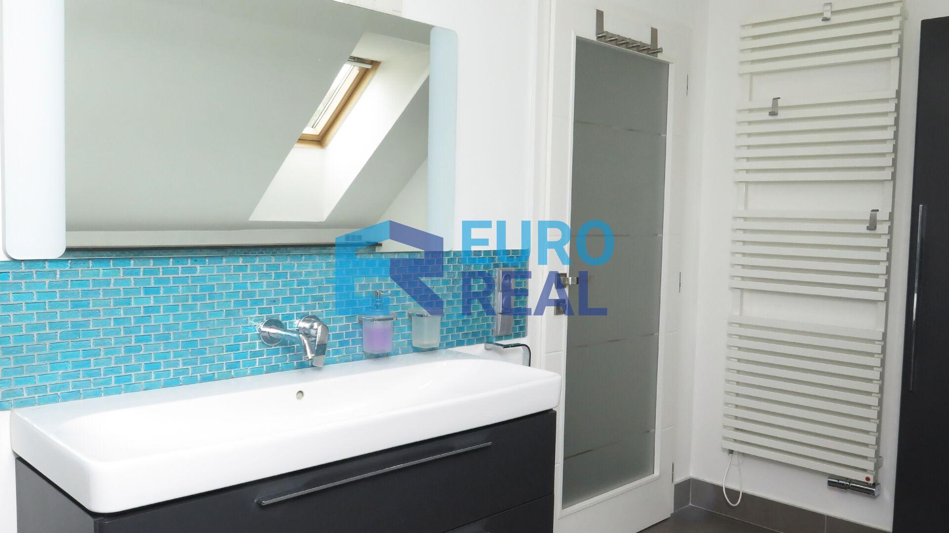 V prvním podlaží pak jsou 3 ložnice se společnou šatnou. V patře je také velká koupelna s vanou i sprchou a WC.