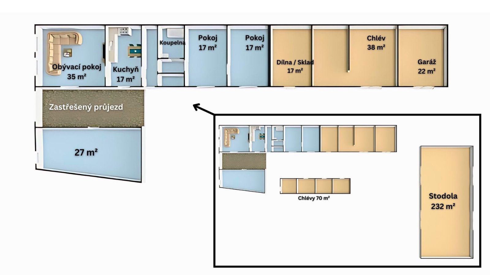 Pokud chcete spojit tradici, klid a svobodu s možností tvořit a rozvíjet své sny, tento statek je připraven stát se vaším novým domovem.