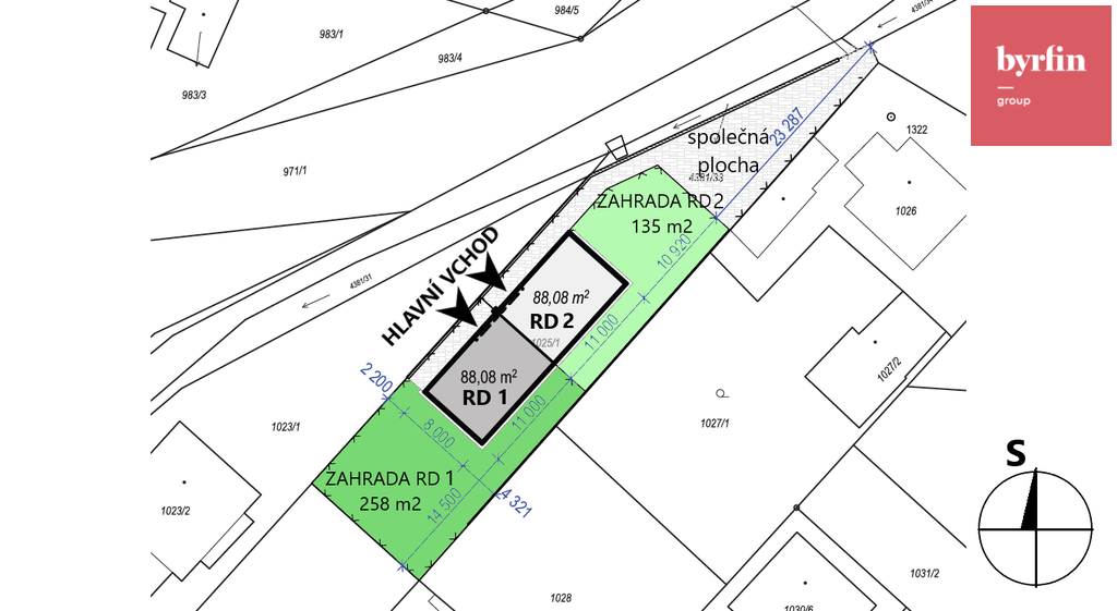 Dům stojí na pozemku o velikosti 262 m², s orientací na severo-východ. Zahrada o ploše 174 m² poskytuje dostatečné zázemí pro odpočinek a nerušené soukromí.
