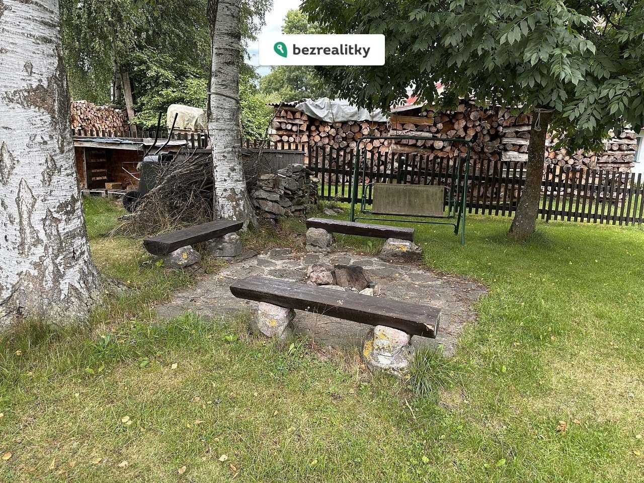 Malá část domu je podsklepena. V severní části domu je přistavena kůlna. Okolo se nachází oplocená a zatravněná zahrada s několika vzrostlými stromy rozléhající se na dvou pozemcích v centru obce o celkové výměře 1036 m2. Pozemky se nacházejí dle územního plánu v zastavěném území, v intravilánu cca 2 min. chůze od centra obce Křižánky. Na zahradu vede brána s vjezdem a lze na ní bez obtíží parkovat vícero vozidly.