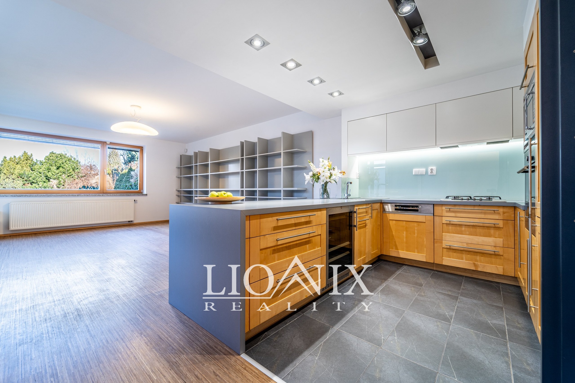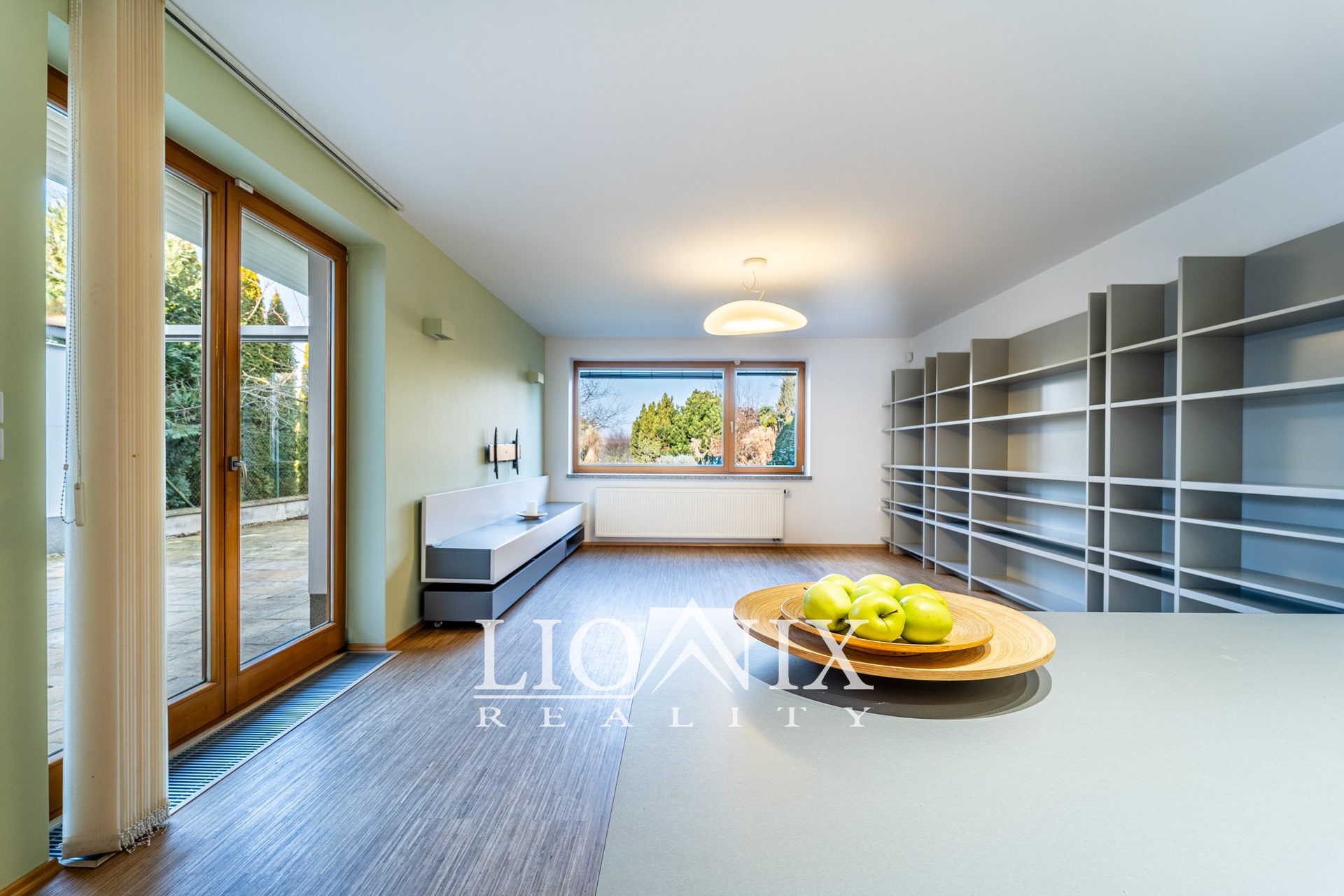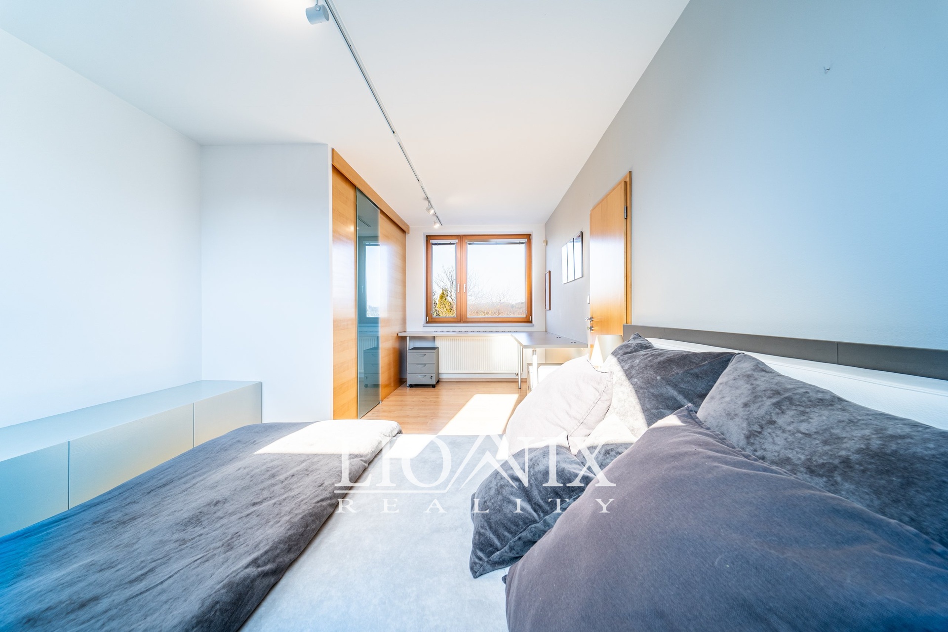Okna jsou dřevěná, třívrstvá, včetně střešních s dálkovým ovládáním rolet a dešťovým senzorem, který chrání interiér před nečekaným deštěm. Venkovní terasa je vybavena výsuvnou roletou pro příjemný stín během horkých dnů. Pro letní osvěžení a relaxaci je k dispozici venkovní bazén. Zahrada nabízí prostor pro odpočinek a zároveň nenáročnou údržbu. Praktický zahradní domek slouží k uskladnění nářadí a sekačky.