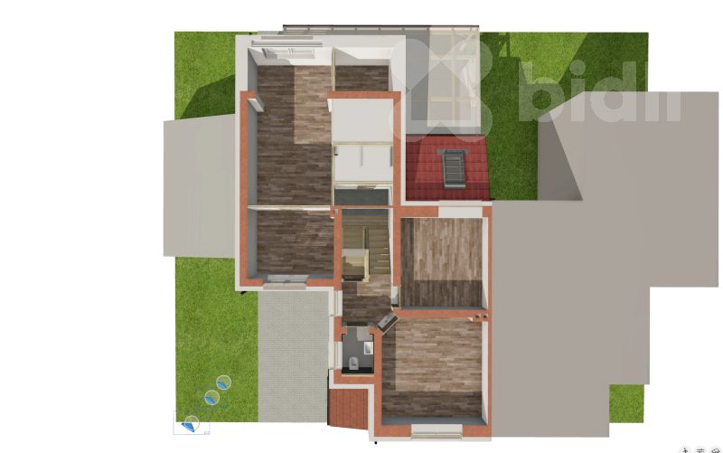Připravený projekt zahrnuje kompletní vnitřní přestavbu: tepelné čerpadlo vzduch-voda s podlahovým vytápěním, fotovoltaiku, nové podlahy, obklady, elektroinstalaci, kuchyni i vybavení koupelen. Dům bude po dokončení energeticky velmi úsporný.