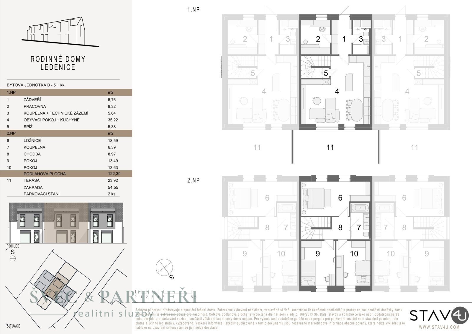 Novostavba 5+kk, 122 m, terasa 24 m, zahrada 725 m, 2x parkování