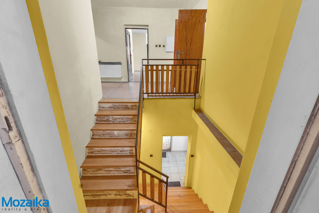 Jedná se o dvoupodlažní cihlový dům bez podsklepení, jehož celková užitná plocha činí 322 m2. Zastavěná plocha domu a nádvoří dosahuje 446 m2, zatímco přilehlá zahrada o rozloze 729 m2 poskytuje dostatek prostoru pro odpočinek, zahradničení nebo rodinné aktivity. Dům je obklopen oplocenou zahradou, která zajišťuje soukromí a klidné prostředí. V přízemí se nachází bytová jednotka o dispozici 3+1, která zahrnuje kuchyň, tři prostorné pokoje, spíž, kotelnu a sklad paliv. Tato část domu je připravena k dokončení, a nový majitel tak může popustit uzdu své představivosti a přizpůsobit ji svým potřebám. Podkrovní bytová jednotka o dispozici 3+kk s lodžií je naopak ve stavu umožňujícím okamžité nastěhování. Díky tomu je nemovitost ideální i k dvougeneračnímu bydlení, přičemž obě bytové jednotky lze oddělit a zajistit tak maximální soukromí obyvatel.